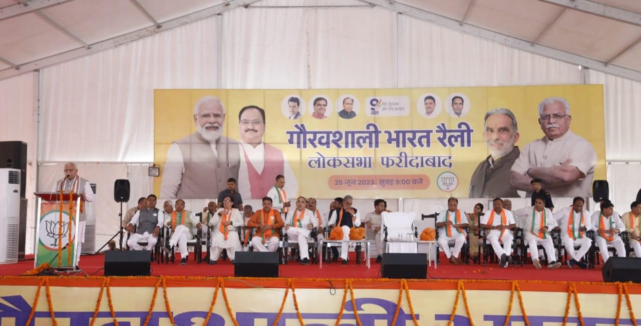 मुख्यमंत्री मनोहर लाल ने फरीदाबाद लोकसभा क्षेत्र की गौरवशाली भारत रैली में की बड़ी घोषणा