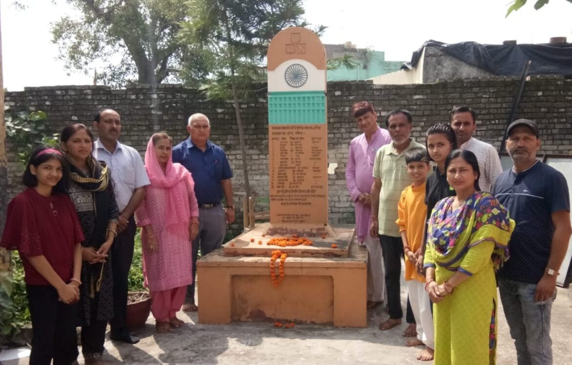 हरिद्वार। देश के विभिन्न राज्यों में *प्रत्येक महीने के प्रथम रविवार को 10 बजे 10 मिनट अपने पूर्वजों के नाम* अभियान के अंतर्गत आज देश के विभिन्न जिलों के साथ ही हरिद्वार जनपद में अमर शहीद जगदीश वत्स पार्क ज्वालापुर में अमर शहीद जगदीश वत्स के चित्र पर स्वतंत्रता संग्राम सेनानी भारत भूषण विद्यालंकार, आयुर्वेद विश्वविद्यालय के कुलपति डॉ. सुनील कुमार जोशी, मुरली मनोहर, डॉ. नरेश कुमार चौधरी तथा प्रसिद्ध समाजसेवी जगदीश लाल पाहवा व उपस्थित परिवारों द्वारा पुष्पांजलि अर्पित की गईं।