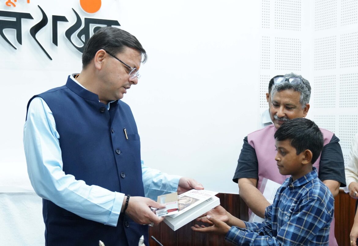 देहरादून। मुख्यमंत्री पुष्कर सिंह धामी से शनिवार को मुख्यमंत्री कैंप कार्यालय में पूर्व राज्यसभा सांसद तरुण विजय के नेतृत्व में वनवासी विद्यालय दून संस्कृति स्कूल में अध्ययनरत वनराजी समुदाय के छात्रों ने भेंट की। मुख्यमंत्री ने सभी बच्चों को पूर्व राष्ट्रपति डॉ. ए.पी.जे. अब्दुल कलाम द्वारा लिखित पुस्तक ’अग्नि की उड़ान’ भेंट की। मुख्यमंत्री ने कहा कि जनजाति समाज के बच्चों का भविष्य बेहतर हो इसके लिए जनजाति कल्याण विभाग द्वारा लगातार प्रयास किये जा रहे हैं। इस अवसर पर यूकॉस्ट के महानिदेशक प्रो. दुर्गेश पंत भी उपस्थित थे।