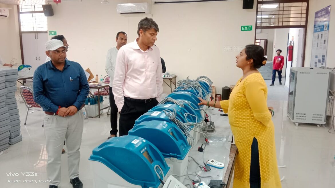 यमुनानगर। उपायुक्त एवं जिला निर्वाचन अधिकारी राहुल हुड्डा ने स्थानीय नवनिर्मित ईवीएम वेयरहाउस नजदीक जिला सचिवालय परिसर में स्थित ईवीएम वेयरहाउस में लोक सभा आम चुनाव-2024 के लिए तैयार की जा रही ईवीएम मशीन की प्रथम स्तरीय निरीक्षण किया। जिला निर्वाचन अधिकारी ने भारत इलैक्ट्रोनिक्स लिमिटेड द्वारा तैनात किए गए 6 इंजिनीयर्स से प्रथम स्तरीय ईवीएम मशीन की जानकारी ली तथा कर्मचारियों द्वारा कि जा रही कार्यवाही का अवलोकन भी किया। उन्होंने स्ट्रांग रूप का भी निरीक्षण किया, निरीक्षण के दौरान निर्वाचन उप-तहसीलदार गुलशन कुमार व प्रथम स्तरीय जांच नोडल अधिकारी सोमपाल मौजूद रहे।