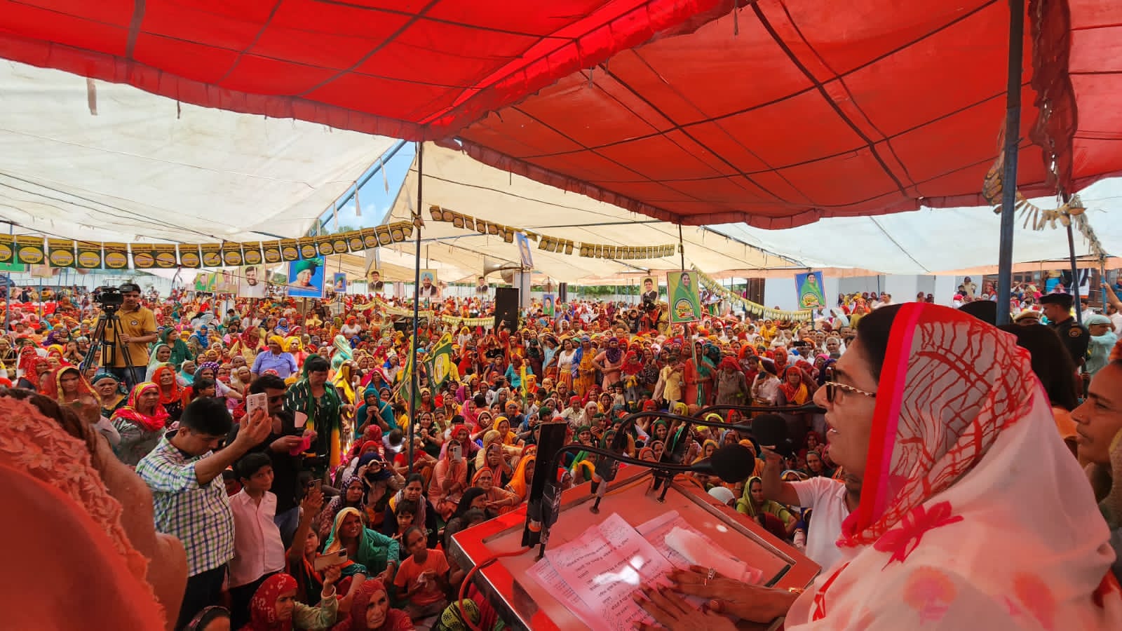 महिलाओं ने विधायक नैना सिंह चौटाला का फूल-मालाओं और गगनचुंबी नारों से जोरदार स्वागत किया। हरि चुनरी चौपाल के बैनर तले आयोजित नांगल चौधरी हलके की पहली महिला रैली क्षेत्र में चर्चा का विषय बनी रही।