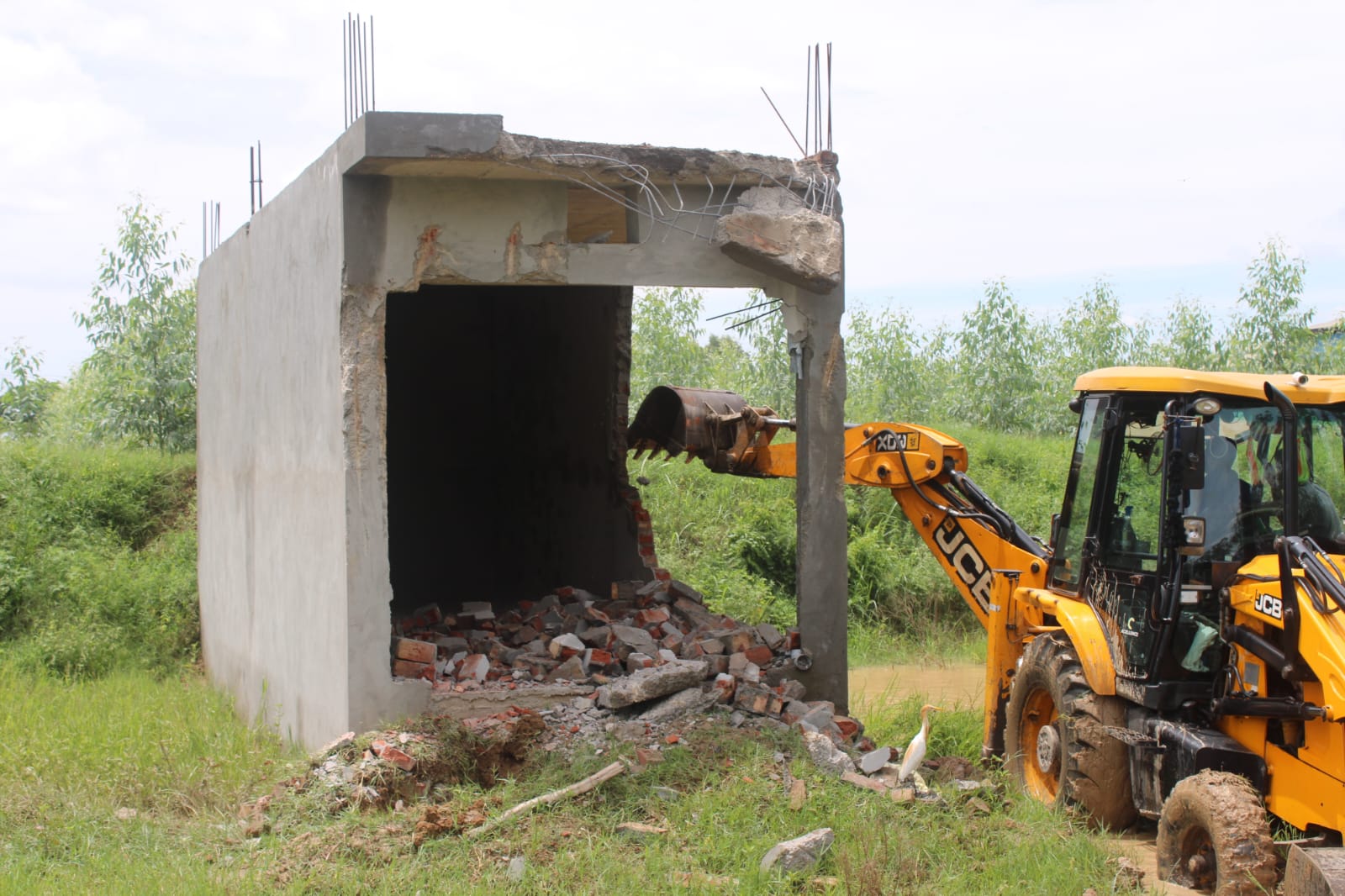 यमुनानगर। जिला नगर योजनाकार डीआर पचीसिया ने जानकारी देते हुए बताया कि उपायुक्त राहुल हुड्डा के निर्देशानुसार अवैध कालोनियों पर कार्यवाही लगातार की जा रही है। इसी कड़ी में गांव फतेहगढ़ तुम्बी तहसील बिलासपुर जिला-यमुनानगर की राजस्व संपदा में जिला प्रशासन की मदद से विध्वंस अभियान चलाया गया। साढौरा-बिलासपुर रोड पर स्थित 6 कनाल की वाणिज्यिक कॉलोनी मे निर्मित एक दुकान, एक डीपीसी और मिट्टी की सडक़ को ध्वस्त कर दिया गया । उन्होंने बताया कि नायब तहसीलदार भारत भूषण को ड्यूटी मैजिस्ट्रेट नियुक्त किया और एसएचओ जगदीश चन्द्र द्वारा पुलिस बल प्रदान किया गया। इस मौके पर जेई समीर सैनी भी उपस्थित थे।