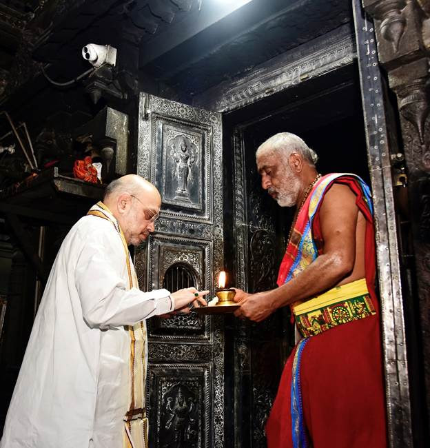 अमित शाह ने विश्व प्रसिद्ध रामेश्वरम मंदिर में पूजा अर्चना भी की