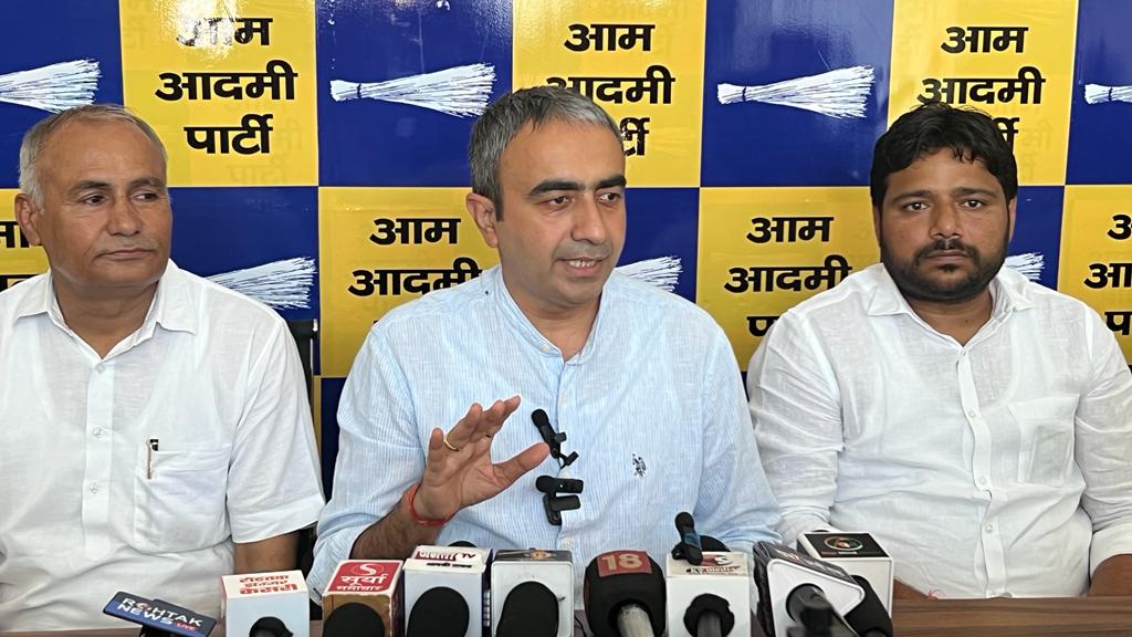 रोहतक। आम आदमी पार्टी के सीनियर वाइस प्रेसिडेंट अनुराग ढांडा ने वीरवार को सोनीपत रोड स्थित जोन कार्यालय में प्रेसवार्ता की। इस दौरान उन्होंने प्रदेश में हुई नूंह हिंसा को लेकर खट्टर सरकार को घेरा। उन्होंने कहा कि प्रदेश बेहद गंभीर स्थिति से गुजर रहा है। हरियाणा में कभी भी सांप्रदायिक सौहार्द का वातावरण नहीं बिगड़ा। लेकिन जिस तरह की घटना नूंह और कई जिलों में हुई, उससे ये लगता है कि कहीं ये कोई राजनीतिक साजिश तो नहीं। सीएम खट्टर ने जब सीएम पद की शपथ ली थी तो उन्होंने हरियाणा के लोगों की सुरक्षा सुनिश्चित करने का वादा किया था। लेकिन आज संविधान की शपथ लेने वाले सीएम खट्टर कहते हैं कि वो हर नागरिक की सुरक्षा नहीं कर सकते। सीएम खट्टर का ये बयान उनके पद की प्रतिष्ठा के खिलाफ और बहुत ही गैर जिम्मेदाराना है।