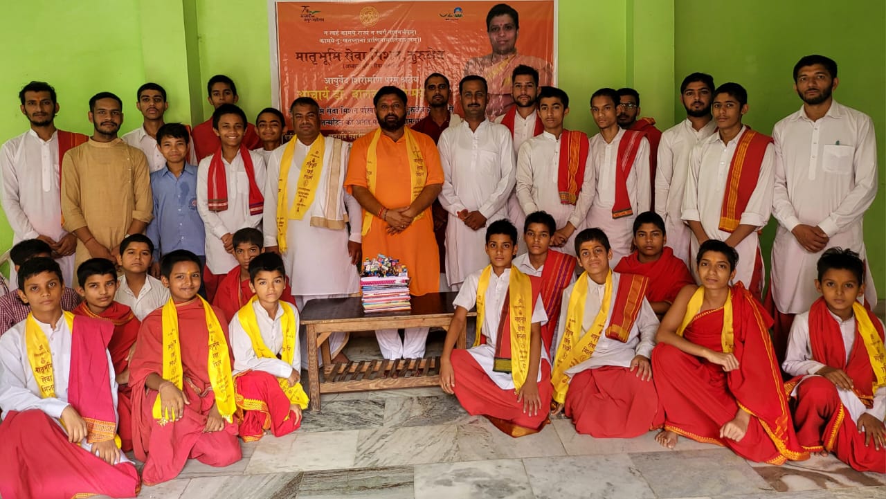 कुरुक्षेत्र । आध्यात्म प्रेरित सेवा संस्थान मातृभूमि सेवा मिशन द्वारा पतंजलि योगपीठ के महामंत्री आयुर्वेद शिरोमणि आचार्य बालकृष्ण के जन्मोत्सव के उपलक्ष्य में वैदिक ब्रम्हचारियों को पाठ्य सामग्री वितरित की गई। कार्यक्रम का शुभारम्भ ब्रम्हचारियों द्वारा लोकमंगल के निमित्त स्वस्तिवाचन से हुआ। इस अवसर पर एक विचारगोष्ठी वैदिक सनातन संस्कृति के सम्पोषण एवं संरक्षण में संत समाज का अवदान विषय पर संपन्न हुई। विचार गोष्ठी को सम्बोधित करते हुए मातृभूमि सेवा मिशन के संस्थापक डा. श्रीप्रकाश मिश्र ने कहा भारत विश्व का सबसे प्राचीन राष्ट्र है। भारतीय संस्कृति के वैश्विक स्तर पर प्रचार प्रसार में देश के महान संतो की भूमिका सदैव बहुत महत्वपूर्ण रही है। सच्चे संत जाति, धर्म, मत, पंथ, सम्प्रदाय आदि दायरों से परे होते हैं। ऐसे करुणावान संत ही अज्ञान-निद्रा में सोये हुए समाज के बीच आकर लोगों में भगवद्भक्ति, भगवद्ज्ञान, निष्काम कर्म की प्रेरणा जगा के समाज को सही मार्ग दिखाते हैं, जिस पर चल के हर वर्ग के लोग आध्यात्मिकता की ऊँचाईयों को छूने के साथ-साथ अपना सर्वांगीण विकास सहज में ही कर लेते हैं। सभी में भगवद्-दर्शन करने की प्रेरणा देने वाले ऐसे संतों के द्वारा ही धार्मिक अहिष्णुता, छुआछूत, जातिगत भेदभाव, राग-द्वेष आदि अनेक दोष दूर होकर समाज का व्यापक हित होता है।ऐसे संतों का जहाँ भी अवतरण हुआ है वहाँ भारतीय संस्कृति के वैदिक ज्ञान का प्रचार-प्रसार होकर समाज में व्यापक परिवर्तन हुए हैं। डा. श्रीप्रकाश मिश्र ने कहा जब समाज में कई विकृतियाँ फैलने लगीं तब आद्य गुरु शंकराचार्य जी ने अपने शिष्यों के साथ भारत के कोने-कोने में घूम-घूमकर सनातन धर्म व अद्वैत ज्ञान का प्रचार किया। लौकिक और पारलौकिक, धार्मिक, आध्यात्मिक, आर्थिक, राजनैतिक उत्थान के लिए शरीर, मन, बुद्धि आदि से की जाने वाली सम्यक चेष्टाएँ ही संस्कृति कहलाती है. यानी हम अपनी कर्म और ज्ञान इन्द्रियों के माध्यम से जीवन के चहुँमुखी समग्र विकास के लिए जो चेष्टाएँ करते हैं, वे संस्कृति हैं।संस्कृति के एक अंश को सभ्यता कहा जाता है. इन दोनों में कुछ फर्क है. संस्कृति का आधार अनुभव से प्राप्त ज्ञान है, जबकि सभ्यता बुद्धि द्वारा विकसित ज्ञान पर आधारित है. जो ज्ञान अनुभव से मिलता है, वह परिवर्तनशील नहीं होता, जबकि बुद्धि से मिला ज्ञान, यानी सभ्यता में बदलाव होता रहता है। डा. श्रीप्रकाश मिश्र ने कहा आचार्य बाल कृष्ण द्वारा आयुर्वेद के क्षेत्र में वैश्विक स्तर पर कार्य हुआ है। उनके द्वारा देशो आयुर्वेदिक औषधियों को खोज हुई है। आज आयुर्वेद, कृषि, पर्यावरण सहित विभिन्न क्षेत्रों में उनके द्वारा महत्वपूर्ण कार्य किया जा रहा है। योग ऋषि स्व