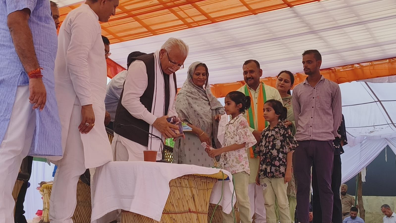 मुख्यमंत्री ने उपस्थित ग्रामीणों को अवगत करवाते हुए बताया कि जनसंवाद कार्यक्रमों के दौरान अब तक 16 हजार प्रतिवेदन प्राप्त हुए थे, जिनमें से 2600 प्रतिवेदनों से संबंधित कार्य हो चुके हैं। 11 हजार पर काम जारी है और 2500 प्रतिवेदन अंतिम चरण में है। उन्होंने कहा कि आज भी जो प्रतिवेदन प्राप्त हुए हैं, जिला स्तर पर संबंधित जो कार्य होंगे उन्हें प्राथमिकता के आधार पर किया जाएगा और जो कार्य मुख्यालय स्तर के होंगे उन्हें बेहतर समन्वय के साथ करते हुए उनका निदान किया जाएगा। इस मौके पर मुख्यमंत्री ने 6 लाभार्थियों को मौके पर ही राशन कार्ड उपलब्ध करवाने का काम किया, जिनमें देशराज, जसवंत सिंह, रोशन लाल, रामकली, राज सिंह और बाबूराम शामिल है। कार्यक्रम में जिला परिषद चेयरपर्सन कमलजीत कौर, पूर्व विधायक डॉ पवन सैनी, पूर्व सांसद कैलाशो सैनी, पशुधन एवं डेयरी विकास बोर्ड के चेयरमैन धर्मवीर मिर्जापुर, मुख्यमंत्री के ओएसडी जवाहर यादव, भाजपा जिलाध्यक्ष रवि बतान सहित अन्य गणमान्य लोग मौजूद थे।