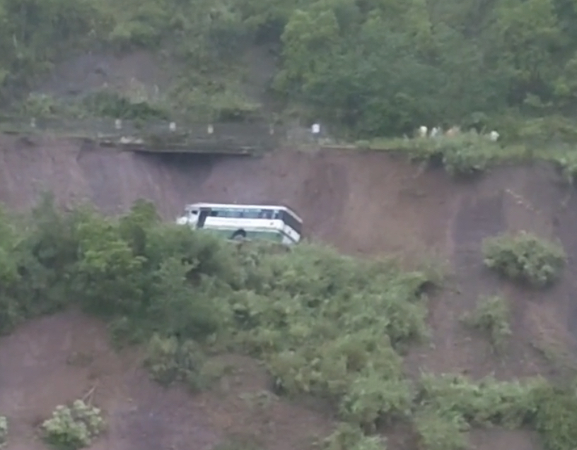 सुंदरनगर। एक दिन पहले हिमाचल में पुलिस कर्मियों से भरी गाड़ी नदी में गिरने की घटना के कुछ ही घंटे बाद एचआरटीसी की बस सड़क धंसते हुए मलबे सहित नीचे जा गिरी। इस बस में 12 लोग सफर कर रहे थे। हादसे में ड्राइवर व कंडक्टर सहित 3 लोगों के घायल होने की जानकारी मिली है। यह बस मंडी से शिमला जा रही थी। इस दौरान बस सुंदरनगर के कांगू डैहर के पास हादसे का शिकार हो गई। हादसे में जख्मी हुए लोगों में ड्राईवर सुनील कुमार और कंडक्टर वेदराम को गंभीर चोटें आई है।