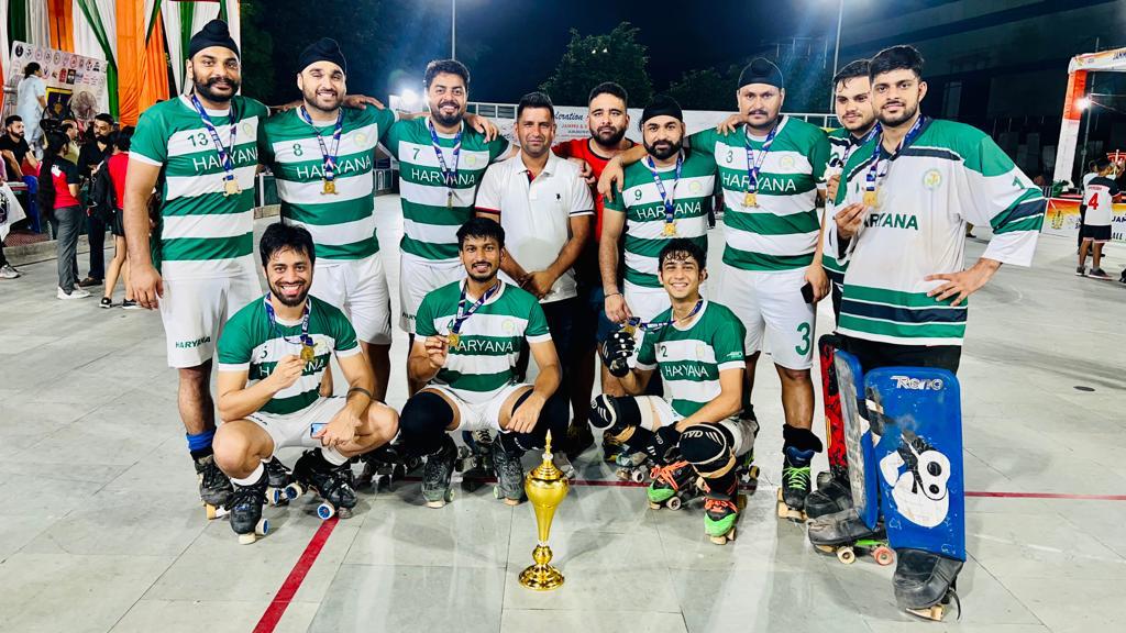 करनाल। जम्मू एवं कश्मीर में आयोजित रोलर हॉकी फेडरेशन कप में हरियाणा ने शानदार जीत हासिल की है । 24 अगस्त से 27 अगस्त तक आयोजित हुई इस प्रतियोगिता में हरियाणा ने फाइनल में चंडीगढ़ को 5-3 से हराते हुए प्रथम स्थान हासिल किया है। यह जानकारी हरियाणा रोलर स्केटिंग टीम के कप्तान एवं पंचायत विभाग में बीडीपीओ गुरमुल्क सिंह ने दी। उन्होंने टीम की जीत का श्रेय हरियाणा रोलर स्केटिंग एसोसिएशन के अध्यक्ष एवं मुख्यमंत्री के अतिरिक्त प्रधान सचिव डॉ अमित अग्रवाल को देते हुए कहा कि यह सब शीर्ष मार्गदर्शन व टीम के सभी सदस्यों की मेहनत के कारण संभव हो पाया है। डॉ अमित अग्रवाल ने भी टीम को जीत के लिए अपनी शुभकामनाएं प्रेषित की है। हरियाणा रोलर स्केटिंग एसोसिएशन के जनरल सेक्रेटरी जितेंद्र ढींगरा ने भी इस जीत पर टीम को बधाई देते हुए कहा है कि यह हरियाणा वासियों के लिए गर्व की बात है।