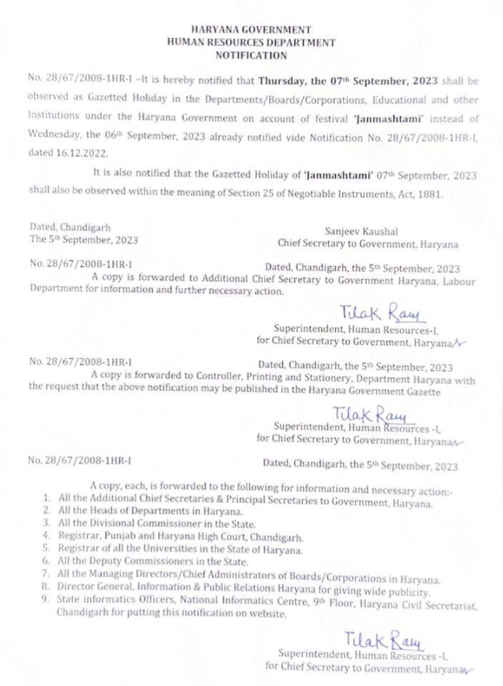 हरियाणा में पहले से ही कई बड़े धर्मगुरु हैं,ज्योतिषाचार्य,कर्मकांडी ब्राह्मण हैं और अब तो राज्य के पास अपने एक गीता मनीषी भी हैं, गीता ज्ञान संस्थानम में गीता रिसर्च सेंटर है,जयराम जैसी संस्था में गीता शोध केंद्र है,बताते हैं कि यहां कई विद्वान शोध करते हैं। पांच जिलों में प्रमुख तीर्थों का संरक्षण और मुख्य उत्सवों का कलेंडर तैयार करने वाला कुरुक्षेत्र विकास बोर्ड है।इसके बावजूद श्री कृष्ण जन्माष्टमी जैसे प्रमुख पर्व की छुट्टी में इस तरह की लापरवाही चिंताजनक है। अब इसी वजह से कई अनेक जगहों पर दो दो श्री कृष्ण जन्माष्टमी आयोजित की जाएगी।