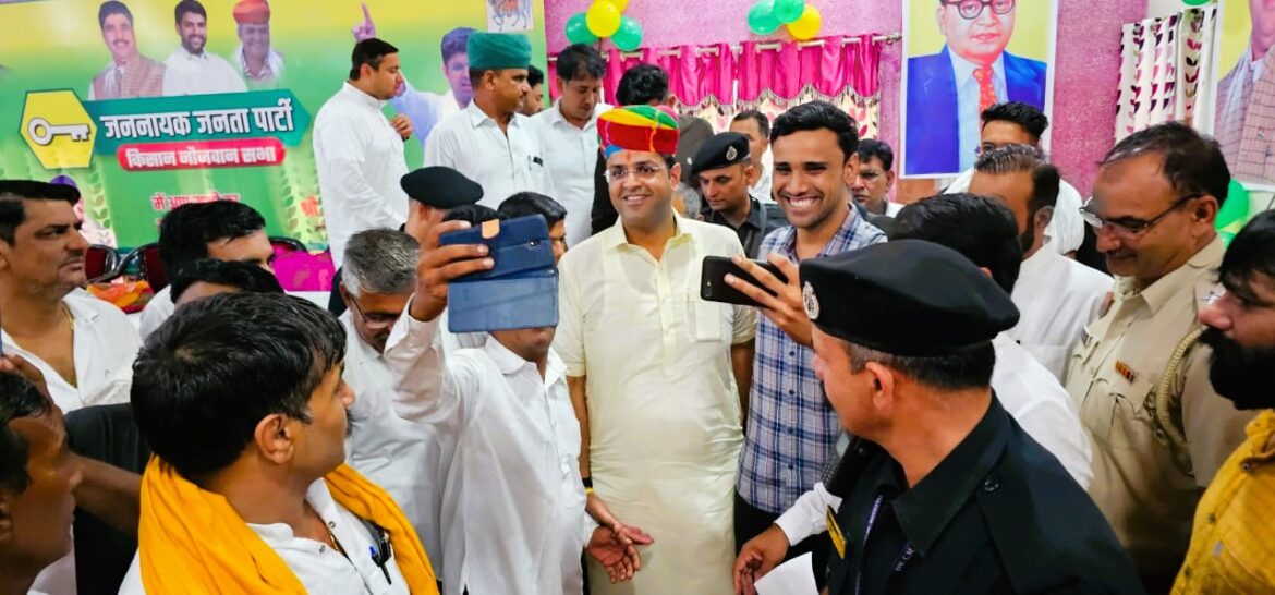 हरियाणा के डिप्टी सीएम दुष्यंत चौटाला बुधवार से राजस्थान के दौरे पर है। इस दौरान विभिन्न दलों से जुड़े लोग जेजेपी में शामिल हो रहे है। राजस्थान के लोगों के लिए जेजेपी मजबूत विकल्प बन रही है। जेजेपी द्वारा राजस्थान के विभिन्न जिलों में किसान नौजवान सभाएं आयोजित करवाई जा रही है, इनमें किसान, युवा व स्थानीय लोग बढ़-चढ़कर डिप्टी सीएम दुष्यंत चौटाला को सुनने आ रहे है। दुष्यंत चौटाला युवाओं के साथ चारपाई पर बैठकर लंच कर रहे है तथा गंभीरता के साथ उनके मुद्दों को समझ रहे है। दुष्यंत चौटाला का यह अंदाज युवाओं को खासा पसंद आ रहा है। दौरे के दौरान दुष्यंत चौटाला 25 सितंबर को जननायक चौ. देवीलाल की जयंती पर सीकर में ‘किसान विजय सम्मान दिवस’ कार्यक्रम को लेकर स्थानीय लोगों को निमंत्रण दे रहे है। शुक्रवार को डिप्टी सीएम ने खरनाल गांव स्थित सत्यवादी वीर तेजाजी महाराज के मंदिर में पूजा-अर्चना भी की और मंदिर के निर्माण कार्य का जायजा लिया।
