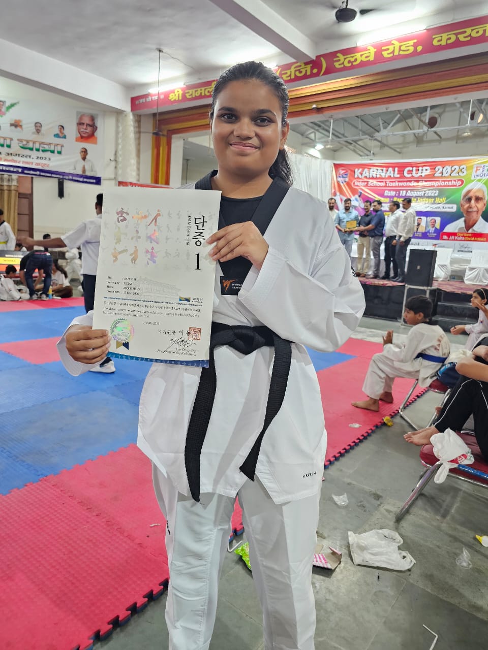 करनाल। दयाल सिंह स्कूल सेक्टर 7 की होनहार खिलाड़ी अदिति मालिक ने हरियाणा स्कूल स्टेट गेम्स की ताइक्वांडो स्पर्धा के अंडर 19 वर्ग में स्वर्ण पदक हासिल कर इतिहास रच दिया है। हरियाणा स्कूल स्टेट गेम्स का आयोजन ऋषिकुल सीनियर सेकेंडरी स्कूल सोनीपत में 15-17 सितंबर को किया गया। दयाल सिंह स्कूल की प्राचार्य शालिनी ने इस शानदार उपलब्धि के लिए विद्यालय के शारीरिक शिक्षा विभाग के अध्यापक वीरेन्द्र और कोच मनीष को बधाई दी। प्राचार्या ने ताइक्वांडो स्पर्धा में गोल्ड मेडल हासिल करने वाली होनहार खिलाडी अदिति मालिक को जीत की बधाई देते हुए नेशनल स्कूल गेम्स के लिए शुभकामनाएं दीं । उल्लेखनीय है कि जिला स्तर पर प्रथम स्थान हासिल करने वाले खिलाड़ियों ने ही इस प्रतियोगिता में हिस्सा लिया था।