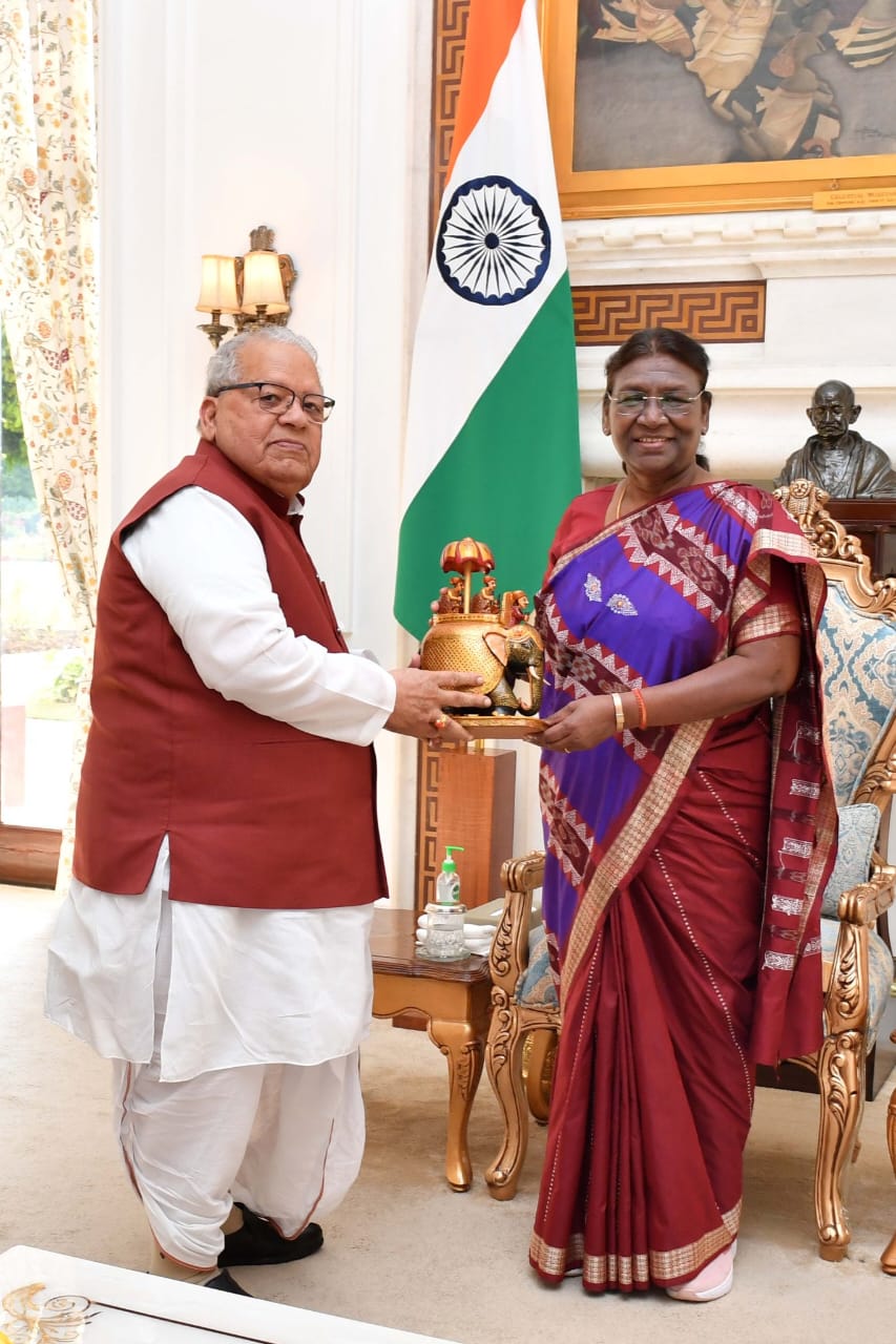जयपुर। राज्यपाल कलराज मिश्र ने मंगलवार को राष्ट्रपति भवन में राष्ट्रपति द्रौपदी मुर्मू से मुलाकात की। राज्यपाल मिश्र की उनसे यह शिष्टाचार भेंट थी। मिश्र ने राष्ट्रपति मुर्मू को इस दौरान अपनी हाल ही प्रकाशित पुस्तक “शिक्षा की संस्कृति” और कार्यकाल के चार वर्ष पर प्रकाशित “संविधान संस्कृति की उज्ज्वल राहें” की प्रतियां भेंट की। राष्ट्रपति ने राज्यपाल मिश्र के सृजन सरोकारों की सराहना की।
