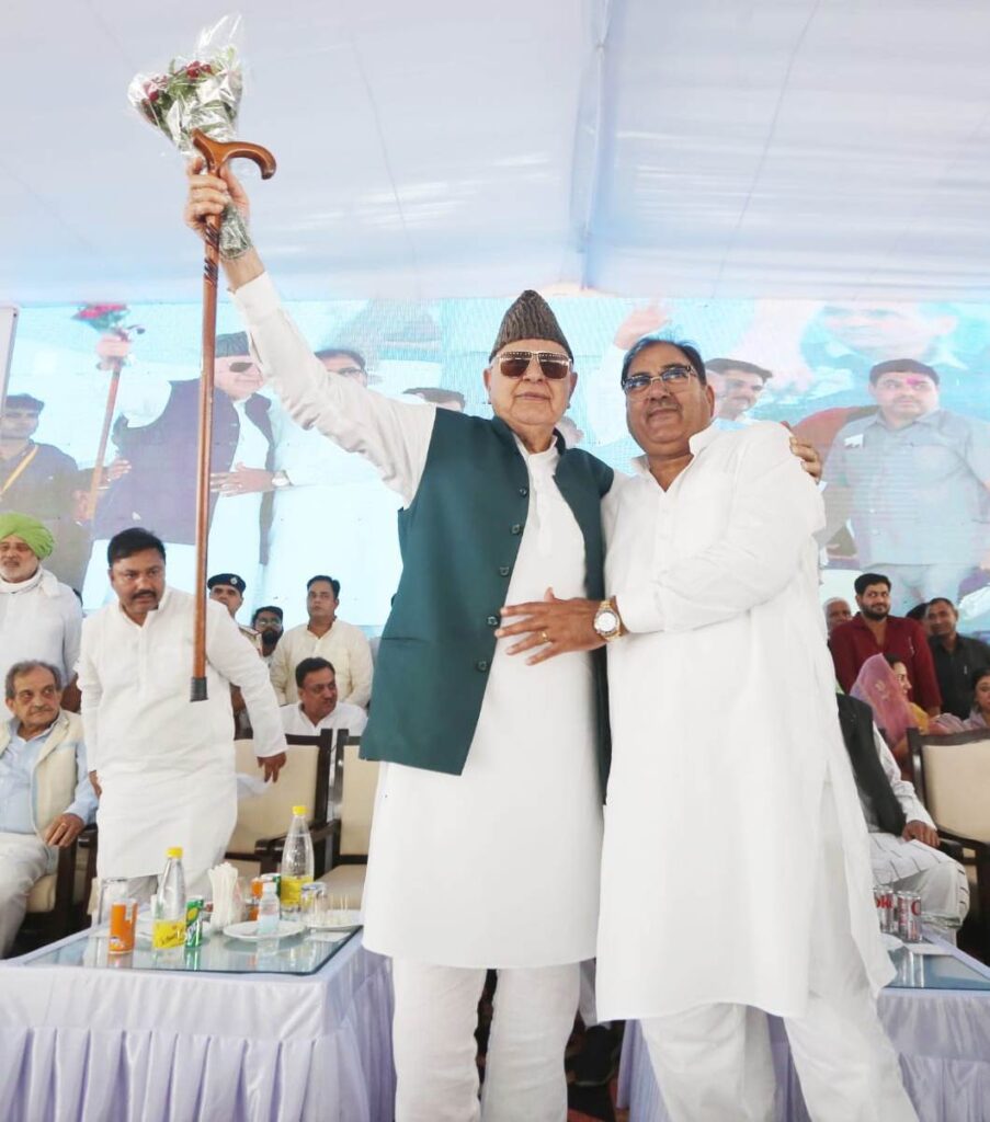 जम्मू कश्मीर के पूर्व मुख्यमंत्री फारुख अब्दुल्ला ने कहा कि आज देश में नफरत फैलाई जा रही है। हिंदू से मुसलमान को और मुसलमान को हिंदू से कोई खतरा नहीं है। इसके पीछे नफरत की सियासत है। उन्होंने कहा इसलिए हमें नाइंसाफी के लिए एकजुट होना होगा। केंद्र सरकार तीन कृषि कानून लाई। 700 से अधिक किसान शहीद हो गए। किसानों की एकता के आगे आखिरकार हुकूमत को झुकना पड़ा। अब्दुल्ला ने उदाहरण देते हुए कहा कि अंग्रेेजों को भारत से बाहर करने के लिए हम सब एक हुए और वतन को अपना धर्म मानते हुए अनेक बलिदान दिए, जिसके फलस्वरूप देश आजाद भी हुआ। उन्होंने कहा कि हिंदुस्तान में करोड़ों मुसलमान पाकिस्तान नहीं गए। उन्होंने जिन्ना के साथ जाने की बजाय महात्मा गांधी और जवाहर लाल नेहरु का हाथ पकड़ा। फिर भी शक किया जाता है। उन्होंने कहा कि वे चौ. ओमप्रकाश चौटाला, सुखबीर बादल और कांग्रेस सभी से एकजुट होने का आग्रह करते हैं।