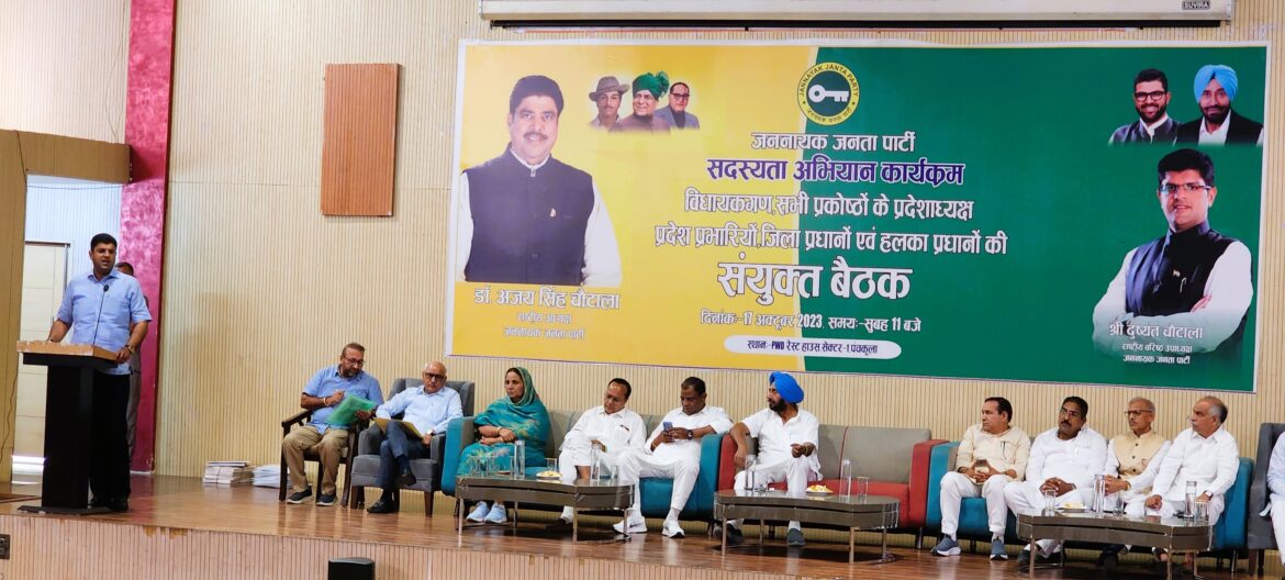 चंडीगढ़। जननायक जनता पार्टी 20 अक्टूबर से लेकर 30 नवंबर तक प्रदेशभर में सदस्यता अभियान चलाएगी। इस सवा महीने चलने वाले सदस्यता अभियान के जरिए जेजेपी ने पांच लाख नए सदस्य बनाने का लक्ष्य रखा है। पंचकुला में जेजेपी की हुई एक महत्वपूर्ण बैठक में पार्टी ने सदस्यता अभियान, संगठन विस्तार, संगठन मजबूती, राजस्थान चुनाव, लोकसभा चुनाव तैयारी सहित कई विषयों पर विस्तारपूर्वक चर्चा की।
