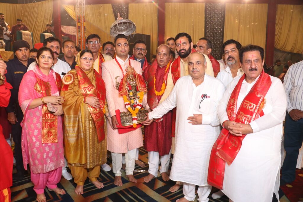 इसके पश्चात उन्होंने श्री देवीकूप पर माँ के 52 लाडले परिवारों को लाल शक्ति चुनरी , माँ मंगल माला से सम्मानित कर उनका पूजन करवाकर मंगल कलश वितरित किए और उन्हें 52 शक्तिपीठों की प्रतीक पावन ज्योतियों के साथ स्थापित करवाया । तत्पश्चात पीठाध्यक्ष परिवार द्वारा सिर्फ नवरात्र में गर्भगृह से निकलने वाली माँ भद्रकाली जी की पीतल प्रतिमा को पूर्ण रीति रिवाज ,आदर सहित जागरण पंडाल में शंख, घंटियों व जयकारों के उद्घोष के साथ पीठाध्यक्ष पंडित सतपाल शर्मा के सानिध्य में मुख्य यजमान एमिल ग्रुप के हेड के के शर्मा जी , मुख्य अतिथि कमलेश ढाण्डा, महिला एवं बाल विकास मंत्री,हरियाणा सरकार , विशिष्ट अतिथि गिरीश कुलकर्णी ,संस्थापक, टेम्पल कनेक्ट व अंतरराष्ट्रीय मंदिर सम्मेलन एवं एक्सपो, दिल्ली उच्च न्यायालय के न्यायमूर्ति रविंद्र डूडेजा दिल्ली हाई कोर्ट, डॉ पवन सैनी महामंत्री हरियाणा , सांसद नायब सिंह सैनी, विधायक सुभाष सुधा , अध्यक्ष नरेंद्र वालिया, देवेश महला दिल्ली, डीसीपी, प्रवीण रानी चंडीगढ़ , डॉ. संजय शर्मा मीडिया प्रमुख हरियाणा, भाजपा व अन्य गणमान्य अतिथियों द्वारा स्थापित किया गया । इस दौरान जागरण पंडाल में हजारों की संख्या में भक्तजन मौजूद रहे ।