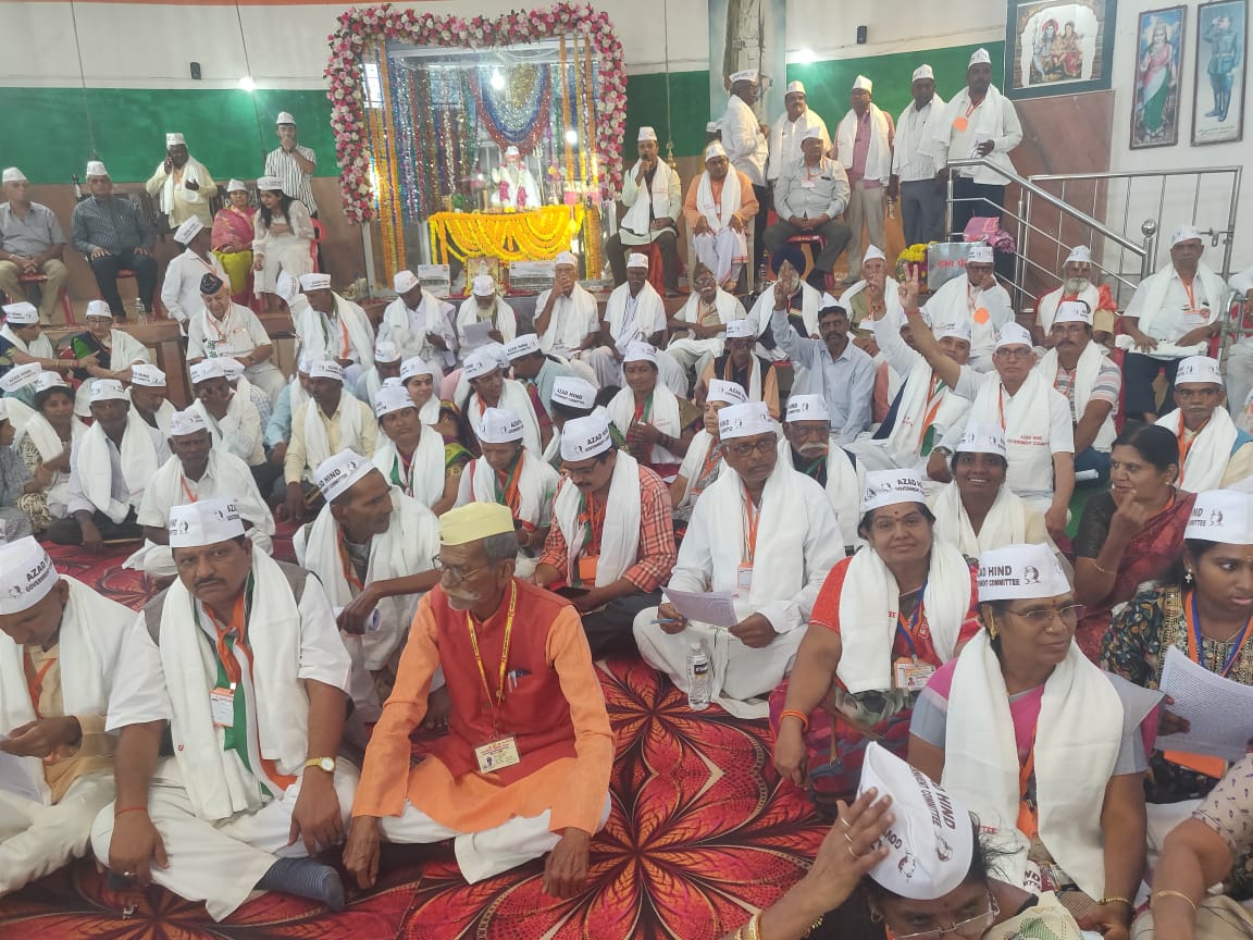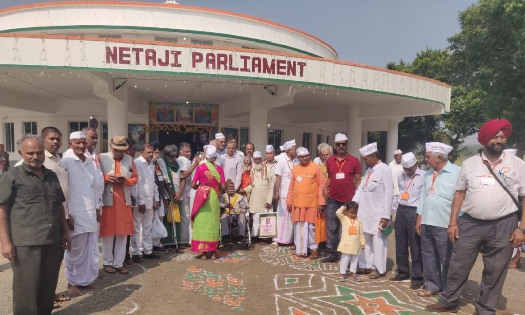 हुम्नाबाद। आजाद हिन्द गवर्नमेंट कमेटी के तत्वावधान में हुम्मनाबाद जिला बीदर कर्नाटक में राजश्री चौधरी की अध्यक्षता, संतराम मुरजानी की कर्मठता तथा हमारे पूज्य स्वतंत्रता संग्राम सेनानियों लेफ्टिनेंट आर माधवन, पांडुरंग गणपत शिंदे, राम अचल आचार्य, भारत भूषण विद्यालंकर, अवतार सिंह, भगवान पुरी, परमानंद शिवम, एलवर्धन, अनंत लक्ष्मण गुरव, पंडित रामा राव कुलकर्णी, रामराव मेत्रकर, गुडे सत्थम्मा, नूकाला लिंगारेड्डी, मरूला सिद्धप्पा, तथा रामास्वामी के सानिध्य में आयोजित नेताजी पार्लियामेंट हुम्नाबाद में आजाद हिन्द फौज की स्थापना का 80 वां स्थापना दिवस हर्षोल्लास के साथ मनाया गया। स्वतंत्रता सेनानी उत्तराधिकारी परिवार समिति के राष्ट्रीय महासचिव जितेन्द्र रघुवंशी के नेतृत्व में देश के विभिन्न राज्यों से स्वतंत्रता सेनानी उत्तराधिकारी संगठनों के सर्वश्री रमेश कुमार मिश्रा, भानु प्रताप द्विवेदी, कपूर सिंह दलाल, डॉ. महादेव बाजपेई, सुरेश चंद्र बबेले, चंद्र प्रकाश दीक्षित, मुन्नालाल कश्यप, अशोक कुमार रायचा, गुरिंदर पाल सिंह, सन्मुगसुन्दरम, अप्पाराव नवले, के मार्कण्डेयन, वसवराज, नित्यानंद शर्मा, प्रेम देवी सहित सैकड़ों स्वतंत्रता सेनानी परिवारों के वरिष्ठ पदाधिकारी भी अपने सहयोगियों के साथ इस महत्वपूर्ण आयोजन में सम्मिलित हुए।