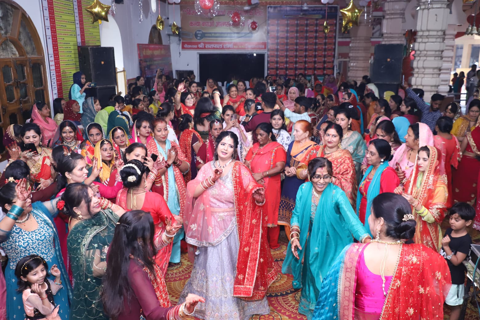 तत्पश्चात महिलाओं ने थालियां बटोरने व गौरी पूजा का कार्यक्रम किया व शिव परिवार की भी पूजा की । सुहागिनों से चन्द्र देव की भी पूजा करवाई गयी क्योंकि चंद्रमा को सामान्यतः आयु, सुख और शांति का कारक माना जाता है । फिर विधिपूर्वक करवा माँ की आरती भी की गई । इसके बाद हरियाणवी लोकगीत व करवा भजन , गरबा व डांडिया पर सभी सुहागिनों ने नृत्य किया । मेरी मांग का सिंदूर, मैया मेरी जोड़ी बनाए, लो आ गया करवे का त्यौहार, मैया ने बना दी जोड़ी, पति की लम्बी उम्र चाहिए, इत्यादि भजनों पर सभी विवाहित महिलाओं ने नृत्य किया । उसके बाद सभी ने श्री देवीकूप पर माँ भद्रकाली जी का ध्यान किया और अपने पति की लंबी उम्र व सुखमय जीवन की कामना की ।