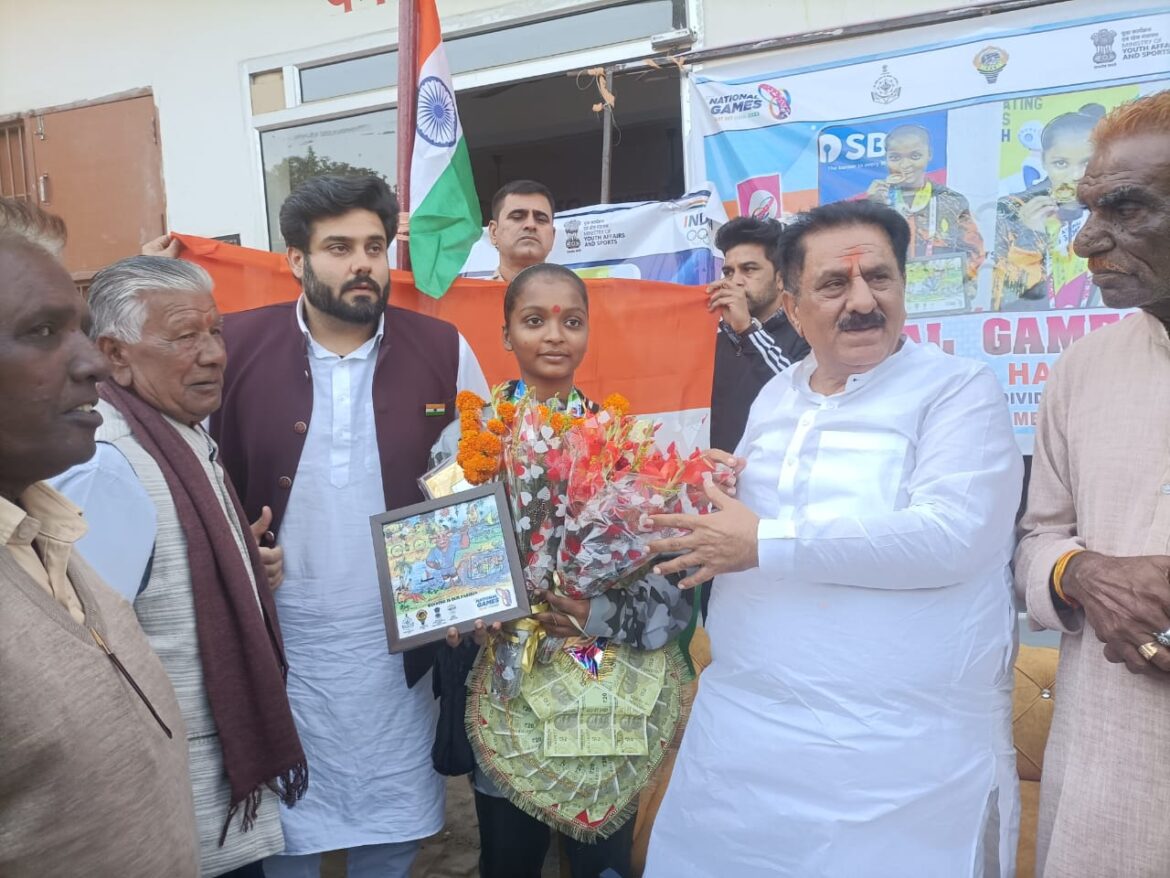 विधायक सुभाष सुधा ने बाहरी गांव की मन्नत को राष्टï्रीय खेल प्रतियोगिताओं में मेडल जीतने पर किया सम्मानित