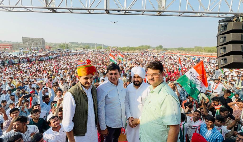 पंजाब के पूर्व मुख्यमंत्री चरणजीत चन्नी के साथ सांसद दीपेन्द्र हुड्डा ने पार्टी प्रत्याशी हरीश चौधरी के समर्थन में रैली को संबोधित किया
