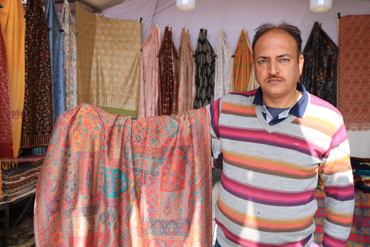 अंतर्राष्ट्रीय गीता महोत्सव 2023 में शिल्पकार निसार अहमद खान को एनजैडसीसी की तरफ से स्टाल नम्बर 3 अलॉट किया है। इस स्टॉल पर शिल्पकार निजार अहमद खान ने कानी शाल, लोई, कम्बल, सूट, फैरन आदि उत्पादों को कुरुक्षेत्र और आस-पास के पर्यटकों के लिए रखा है। इस महोत्सव में सालों से पर्यटकों की कानी शाल की पेशकस को पूरा करने का प्रयास कर रहे है। यहां महोत्सव में आने के लिए हमेशा उत्साहित रहते है। उन्होंने विशेष बातचीत करते हुए कहा कि पुस्तों से उनका परिवार कानी शाल बनाने का काम कर रहा है। इस महोत्सव में पसमीना की कानी शाल जिसकी कीमत 1 हजार रुपए से लेकर 15 हजार रुपए तक है, लेकर आए है। अगर सही मायने में पसमीना की कानी शाली की बात करे तो उच्च गुणवत्ता की पसमीना कानी शाल बनाने में 6 साल का समय लग जाता है। इस कानी शाल को डोगरा, सिख और मुगल काल में भी पसंद किया गया है। उस समय पसमीना का बडा शाल पहना जाता था और राजा महाराजा इस शाल को बडे ही शौंक के साथ पहनते थे।