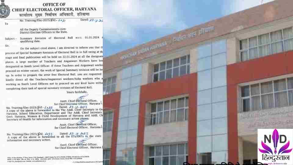 चंडीगढ़। हरियाणा के मुख्य चुनाव आयुक्त ने राज्य के सभी उपायुक्तों सह- जिला निर्वाचन पदाधिकारियों को मतदाता सूचियों के संक्षिप्त पुनरीक्षण की तिथि सुनिश्चित करते हुए स्पष्ट किया है कि मतदाता सूची के विशेष सारांश पुनरीक्षण की प्रक्रिया इस स्तर पर पूरे जोरों पर है। अंतिम प्रकाशन 22 जनवरी 2024 को सभी नामित स्थानों पर किया जाएगा। बड़ी संख्या में शिक्षकों और आंगनवाड़ी कार्यकर्ताओं को बूथ स्तर अधिकारी (बीएलओ)के रूप में नामित किया गया है। यह बीएलओ यानी शिक्षक और आंगनवाड़ी कार्यकर्ता सूचियों का निपटान किए बिना शीतकालीन अवकाश पर चले गए तो विशेष सारांश पुनरीक्षण का कार्य रुक जाएगा। अवगत कराया गया है कि वे निर्देश दें कि कि मतदाता सूची के विशेष संक्षिप्त पुनरीक्षण का कार्य पूरा किए बिना किसी भी प्रकार की छुट्टी पर न जाएं। इन आदेशों के बाद शिक्षक एवं आंगनवाड़ी कार्यकर्ता संगठनों की भौंहें तनी हुई है।