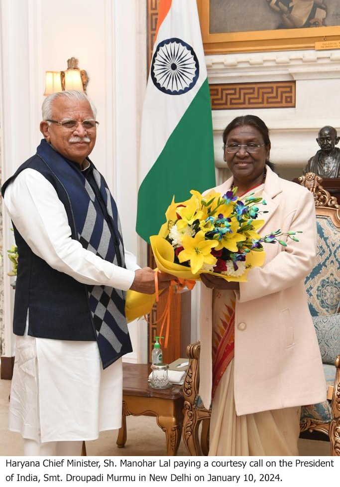 मुख्यमंत्री मनोहर लाल ने राष्ट्रपति भवन पहुंचकर राष्ट्रपति को दिया निमंत्रण