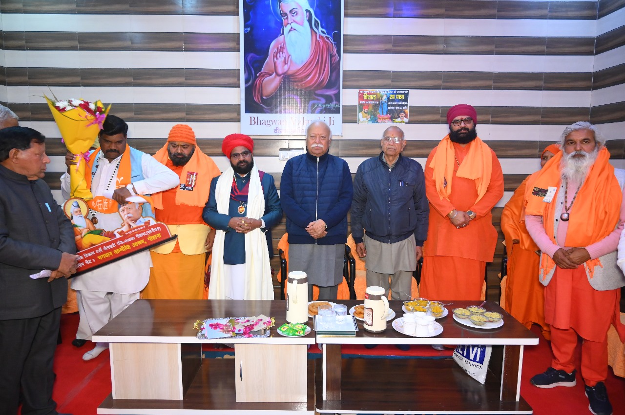 वही भागवत ने भी सभी उपस्थित संतो को शाल ओढ़ाकर उनका आशीर्वाद प्राप्त किया। स्मरण रहे कि इसी आश्रम से राम मन्दिर निधि समर्पण का शुभारम्भ स्वामी ज्ञानानंद महाराज की उपस्थिति में हुआ था। स्वागत में रामकुमार मित्तल, सुलतान सिंह भारतभूषण, दिनेश सुरेंद्र, बृजेश, रामधारी प्रधान, विनोद सेहरावत, श्यामलाल वशिष्ठ, रणधीर सैनी, संजय महंदीरता व रजनी विरमानी भी उपस्थित रहे ।