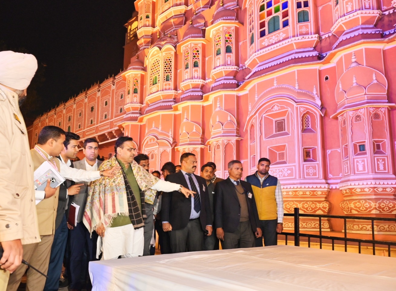 जयपुर। मुख्यमंत्री भजनलाल शर्मा ने बुधवार देर रात को प्रधानमंत्री नरेंद्र मोदी एवं फ्रांस के राष्ट्रपति इमैनुएल मैक्रॉन के आगामी राजस्थान दौरे के प्रस्तावित रूट तथा प्रमुख स्थानों का निरीक्षण किया। उन्होंने अधिकारियों को जरूरी तैयारियों हेतु दिशा-निर्देश दिए। इस दौरान संसदीय कार्य मंत्री जोगाराम पटेल, ऊर्जा राज्य मंत्री हीरालाल नागर, सांसद सीपी जोशी सहित अन्य जनप्रतिनिधि एवं वरिष्ठ अधिकारी भी साथ रहे।