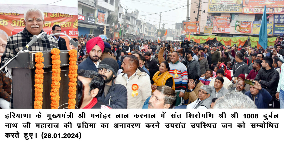 मुख्यमंत्री ने करनाल के बांसो गेट स्थित संत शिरोमणि श्री दुर्बलनाथ महाराज की मूर्ति का किया अनावरण