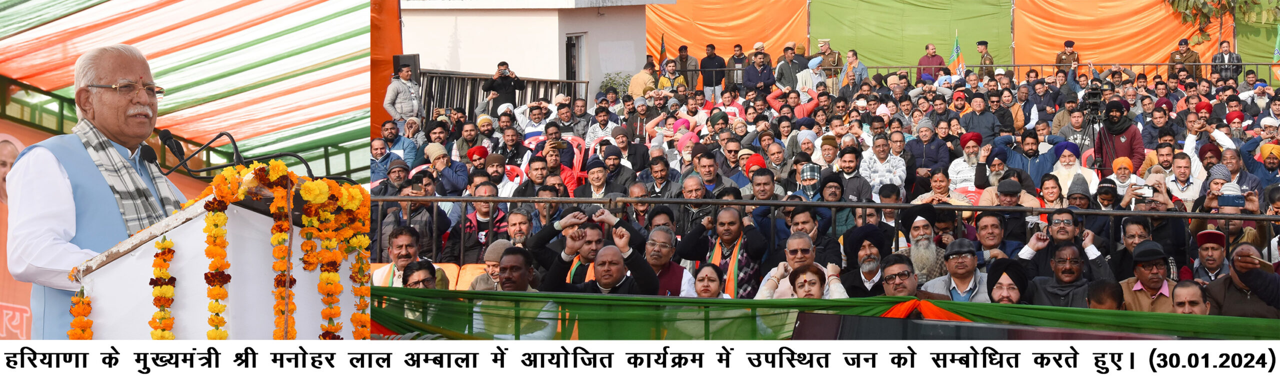 मुख्यमंत्री मनोहर लाल ने इस मौके पर यह भी कहा कि पिछले दो महीने से विकसित भारत संकल्प यात्रा का आयोजन किया जा रहा है। कुछ जिलों में यह यात्राएं चल रही हैं, 31 जनवरी तक इन यात्राओं का समापन होगा। हर व्यक्ति की, हर परिवार की चिंता करना तथा समाज का वो भाग जो वंचित है, अभावग्रस्त है उसे मुख्य धारा से जोडऩे का काम हमने इस विकसित भारत संकल्प यात्रा के माध्यम से करने का काम किया है। हरियाणा के 6200 गांवों में तथा शहरों में लगभग 2000 जगह यानि पूरे हरियाणा में लगभग 8000 से अधिक जगहों पर यह कार्यक्रम आयोजित करके केन्द्र व प्रदेश की जो योजनाएं है, उनका लाभ हाथों हाथ योग्य पात्रों को दिलवाने का काम किया गया है। उन्होंने कहा कि हमें इन कार्यों एवं योजनाओं को जनता के बीच जाकर व उनके घर द्वार पर उन्हें अवगत करवाना है, ताकि वे इन योजनाओं का लाभ उठा सकें।