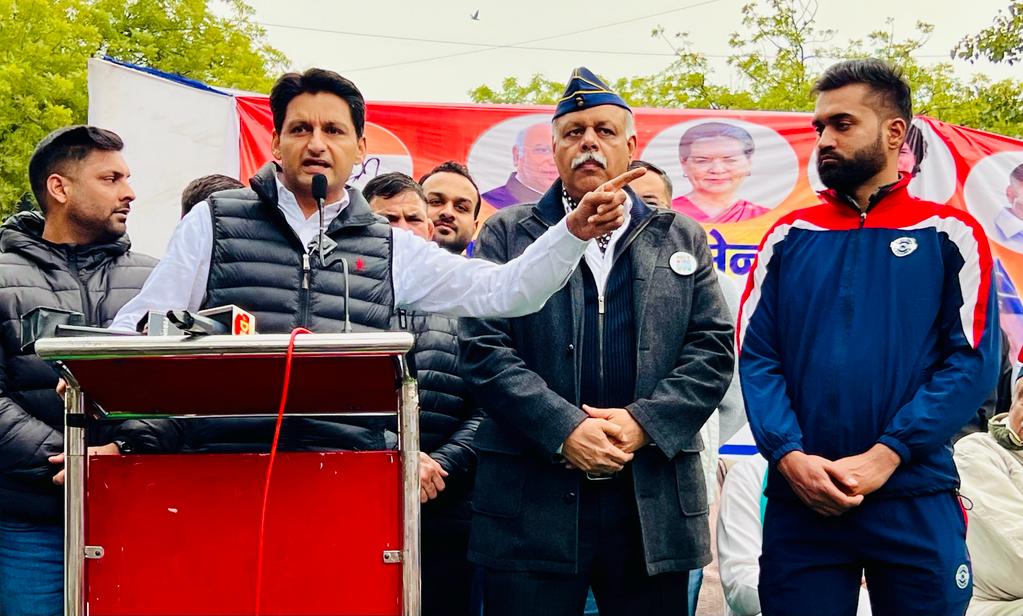चंडीगढ़।सांसद दीपेन्द्र हुड्डा ‘जय जवान’ अभियान के तहत आज दिल्ली के जंतर-मंतर पर कांग्रेस पार्टी के पूर्व सैनिक विभाग द्वारा आयोजित धरने पर पहुंचे और अग्निपथ योजना लागू होने से पहले सेना में चयनित 1.5 लाख युवाओं को तुरंत नियुक्ति दिए जाने की मांग का समर्थन किया। दीपेन्द्र हुड्डा ने कहा कि सरकार अग्निपथ योजना को तुरंत खत्म कर सेना में रेगुलर भर्ती शुरू करे। यह योजना न तो देश की सेना के हित में है, न देश के हित में है और न ही देश के युवाओं के हित में है। उन्होंने कहा कि कांग्रेस सरकार बनने पर अग्निवीरों को रेगुलर सैनिक के तौर पर बदल देंगे और पहले की तरह फौज में रेगुलर भर्ती शुरू करेंगे। दीपेन्द्र हुड्डा ने कहा कि रेवाड़ी की वीर भूमि से वन रैंक वन पेंशन का नारा लगाने वाली भाजपा दिल्ली की सत्ता पर बैठते ही नो रैंक, नो पेंशन ले आयी। अग्निवीर स्कीम के जरिए बीजेपी सरकार ने देश की सेना को 2 हिस्सों में बांटने का काम किया है – नियमित सैनिक और अग्निवीर सैनिक। सरकार शहीद और शहीद में फर्क कर रही है और साथ ही, देश की सेना को कमजोर बना रही है। अग्निवीर योजना देश की फौज को खोखला करने की योजना है। दीपेन्द्र हुड्डा ने कहा कि हम देश भर में अग्निपथ योजना को समाप्त करने की लड़ाई लड़ेंगे। जय जवान अभियान देश के युवाओं के साथ हुए अन्याय के खिलाफ न्याय की लड़ाई है।