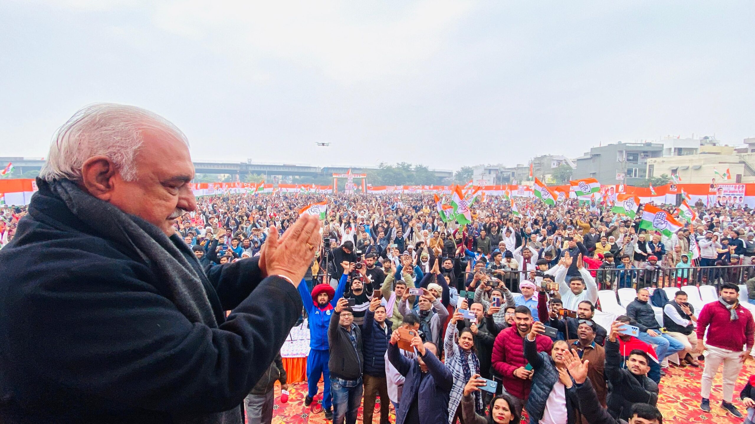 चंडीगढ़। तिगांव में आयोजित जनआक्रोश रैली से पहले आज सुबह से हो रही बारिश और कड़ाके की सर्दी के बावजूद लोगों की भारी हाजिरी को देखकर गदगद हुए हुड्डा ने कहा कि ये साफ संकेत है कि हरियाणा में आने वाली सरकार कांग्रेस पार्टी की होगी। फरीदाबाद से उठी बदलाव की आवाज़ पूरे प्रदेश में जायेगी। रैली को प्रदेश कांग्रेस अध्यक्ष चौ. उदयभान, सांसद दीपेन्द्र हुड्डा ने भी संबोधित किया। नेता प्रतिपक्ष और पूर्व मुख्यमंत्री भूपेंद्र सिंह हुड्डा ने कहा कि फरीदाबाद शहर को पूर्व प्रधानमन्त्री नेहरु जी ने ये सोचकर बसाया था कि ये देश का पहला इंडस्ट्रियल टाउन होगा। हमारी सरकार ने अपने कार्यकाल में फरीदाबाद को आगे ले जाने के लिये बहुत से कार्य किये। लेकिन मौजूदा सरकार के 9 वर्षों में फरीदाबाद को फकीराबाद कहा जाने लगा। उन्होंने सवाल किया कि बीजेपी सरकार ने 9 साल में फरीदाबाद के लिये कोई एक काम किया हो तो बताए।