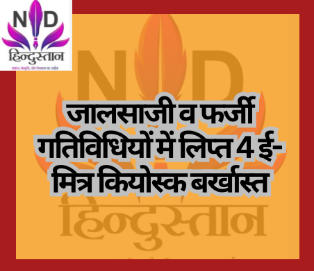 जयपुर। जालसाजी करने एवं फर्जी गतिविधियों में लिप्त पाए जाने वाले जयपुर जिले के चार ई-मित्र कियोस्क को बर्खास्त कर दिया गया है। अतिरिक्त जिला कलक्टर (उत्तर) अलका विश्नोई ने बताया कि कि बर्खास्त किये गए ई-मित्र कियोस्क ई-मित्र पोर्टल पर भेजे जाने वाले मूल निवास प्रमाण पत्रों के आवेदनों में प्रस्तुत दस्तावेजों में जालसाजी कर, फर्जी एवं कूटरचित दस्तावेज लगाकर गलत तरीके से मूल निवास प्रमाण पत्र बनवाने की कूटरचना के दोषी पाए गए हैं।
