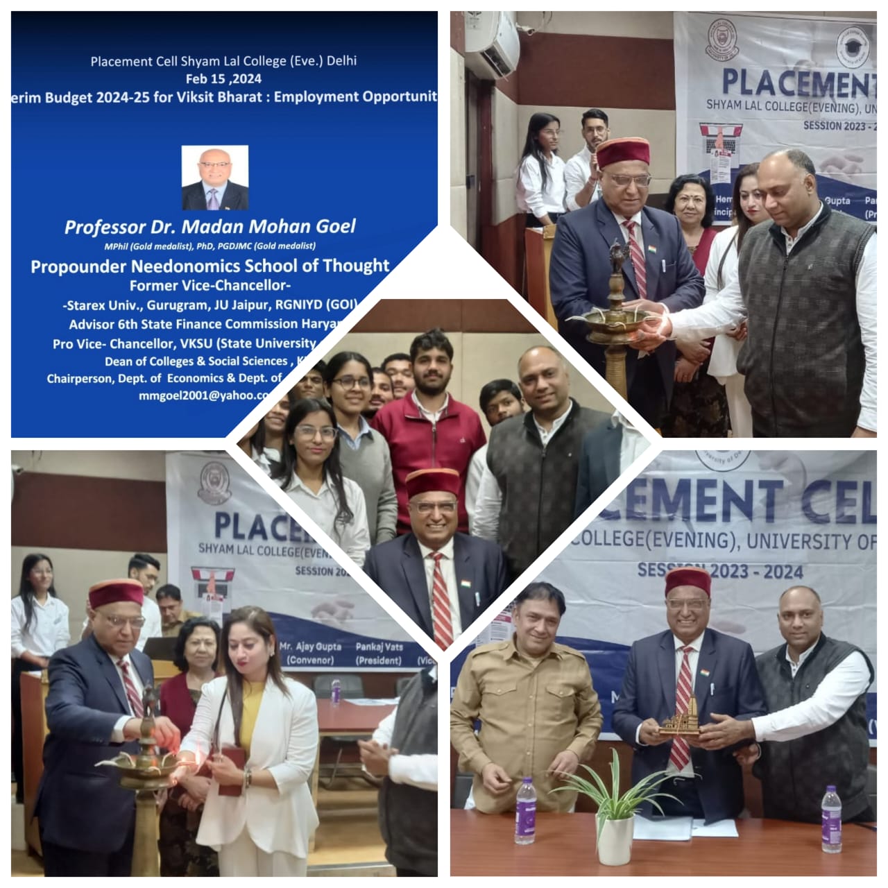 दिल्ली।“ विकसित भारत हेतु 47,65,768 करोड़ रुपये के आकार का अंतरिम बजट 2024-25 आशा और उत्साह के साथ एक विशुद्ध रूप से लोकतांत्रिक बजट है।“ ये शब्द पूर्व कुलपति एवं नीडोनोमिक्स स्कूल ऑफ थॉट के प्रवर्तक, कुरूक्षेत्र विश्वविद्यालय के सेवानिवृत्त प्रोफेसर डॉ. मदन मोहन गोयल ने कहे । वह प्लेसमेंट सेल द्वारा आयोजित “विकसित भारत के लिए अंतरिम बजट 2024-25: रोजगार के अवसर” विषय पर श्याम लाल कॉलेज (शाम ) दिल्ली के छात्रों और कर्मचारियों को संबोधित कर रहे थे। कार्यक्रम में प्राचार्य डॉ. हेमन्त कुकरेती ने स्वागत भाषण दिया और प्रो. एम.एम. गोयल की उपलब्धियों पर एक प्रशस्ति पत्र भी प्रस्तुत किया। . संयोजक डॉ. अजय गुप्ता ने धन्यवाद ज्ञापित किया। पंकज वत्स और नंदिनी पॉल ने समारोह के संचालक की भूमिका निभाई।