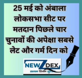 अंबाला। शनिवार 16 मार्च भारतीय निर्वाचन आयोग द्वारा देश की 18 वीं लोकसभा के आम चुनाव के लिए घोषित चुनावी कार्यक्रम में हरियाणा प्रदेश की 10 लोकसभा सीटों, जिनमें स्थानीय अम्बाला (अनुसूचित जाति आरक्षित ) सीट भी शामिल है, पर 25 मई 2024 शनिवार को मतदान होगा। इसी बीच शहर निवासी हाईकोर्ट एडवोकेट एवं चुनावी विश्लेषक हेमंत कुमार (9416887788) ने भारतीय चुनाव आयोग के आधिकारिक आंकड़ों से जानकारी एकत्रित कर बताया कि अगर पिछले चार लोकसभा आम चुनावों के दौरान अम्बाला लो.स. सीट पर कराये गए मतदान की तारीखों का अवलोकन जाए, तो इस बार सबसे लेट और गर्म दिन को मतदान होगा।