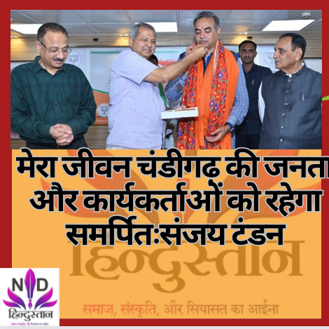 चंडीगढ़। भाजपा प्रत्याशी घोषित किए जाने के बाद संजय टंडन ने कहा कि उनका जीवन चंडीगढ़ और कार्यकर्ता के लिए समर्पित रहेगा,यही मेरा संकल्प है। बुधवार को पार्टी प्रत्याशी घोषित होने के बाद टंडन सेक्टर-33 स्थित भाजपा कार्यालय कमलम में पहुंचे थे।यहां उनका गर्मजोशी से स्वागत किया गया। इसके उपरांत पार्टी के सभागार में टंडन को गुजरात के पूर्व मुख्यमंत्री विजय रुपाणी एवं भाजपा प्रदेशाध्यक्ष जितेंद्र पाल मल्होत्रा ने मुंह मीठा कराकर फुलकारी भेंट की और बधाई दी।