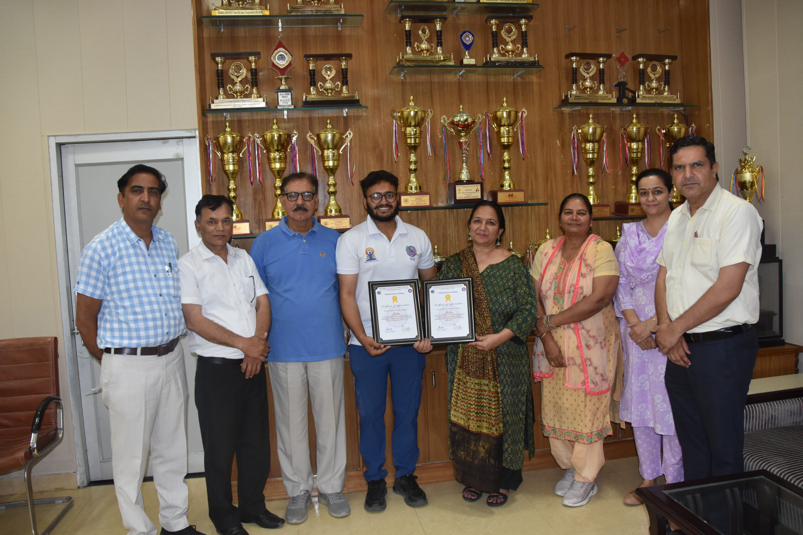 रोहतक। महर्षि दयानंद विश्वविद्यालय के 49वें स्थापना दिवस पर जाट कॉलेज के विद्यार्थी जतीन मलिक को राष्ट्रीय सेवा योजना के वर्ष 2021-22 के लिए स्टेट एनएसएस अवार्ड और यूनिवर्सिटी का सर्वश्रेष्ठ वालिंटियर्स नवाजे जाने पर जाट कॉलेज में खुशियां मनाई गई। प्राचार्या डॉ. शबनम राठी व एनएसएस से जुड़े विद्यार्थियों और शिक्षकों ने कॉलेज पहुंचने पर जतीन मलिक को शुभकामनाएं देते हुए उसके उज्ज्वल भविष्य की कामना की।
