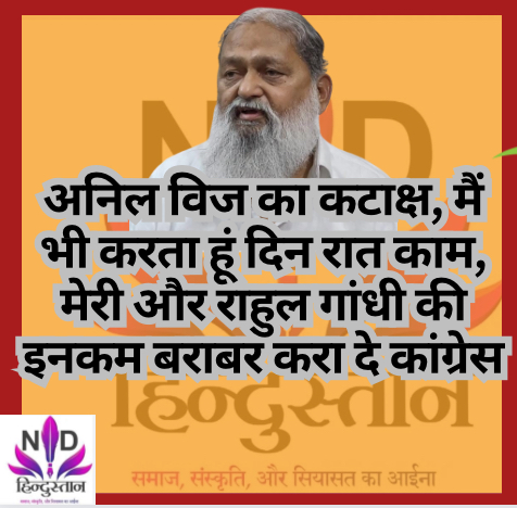 अंबाला। हरियाणा के पूर्व गृह मंत्री अनिल विज ने आज कांग्रेस नेता राहुल गांधी के बयान ‘सबकी इनकम बराबर कर देंगे’ पर जबरदस्त कटाक्ष करते हुए कहा कि “पहले मेरी और राहुल गांधी की इन्कम बराबर करवा दो, बाकि की जब ये (कांग्रेस) करेंगे तो कर दे, क्योंकि मै भी तो दिन- रात मेहनत करता हूँ इसलिए हम दोनों (अनिल विज-राहुल गांधी )की बराबर दो”। विज ने हँसते हुए कहा कि अब राहुल गांधी क्या सोचते है और क्या करते है, “looking London taking Tokyo” वाली बात है”।