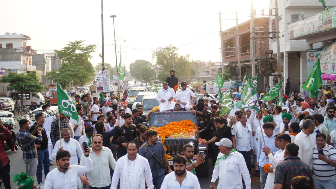 कुरूक्षेत्र। इनेलो प्रत्याशी अभय सिंह चौटाला ने बुधवार को विशाल रोड शो कर अपनी ताकत का प्रदर्शन किया। इस दौरान भकियू नेता सरदार गुरनाम सिंह चढूनी, महिला नेत्री कांता अलाड़िया और मशहूर पंजाबी सिंगर मनकीरत औलख भी उनके साथ रहे। रोड शो में पूरे जिले से भीड़ उमड़ पड़ी। जिसे देखकर सुनिश्चित हो गया कि लोगों ने अभय चौटाला को इस सीट से सांसद बनाने का फैसला ले लिया है। अभय ने रोड शो में उमड़ी भीड़ को नमन करते हुए कहा कि ताऊ देवीलाल की नीतियों में विश्वास के लिए वे जनता के आभारी हैं। वे सांसद बने तो ताऊ देवीलाल की सीख को आगे बढ़ाते हुए सभी वर्गों के हितों के लिए काम करेंगे। बुधवार सुबह इनेलो कार्यकर्ता हजारों की संख्या में वाहनों के साथ रादौर में एकत्रित हुए। जहां से कारवां बढ़ता चला गया। रादौर के मुख्य मार्गों से शुरू होकर रोड शो लाडवा की ओर निकला। जहां रास्ते में अनेकों गांवों में अभय चौटाला के समर्थन में जनसैलाब उमड़ पड़ा। इसके बाद लाडवा में लोगों ने अभय चौटाला का उत्साह के साथ स्वागत किया। साथ ही जनसमर्थन का ऐलान किया। इसके बाद रोड शो बबैन, खरीडंवा से होते हुए डींग, शाहबाद पहुंचा। शाहबाद में अभय चौटाला ने लोगों को संबोधित करते हुए 25 मई को अधिक से अधिक वोट की अपील की। इसके बाद रोड शो नलवी पहुंचा। जहां से ठोल गांव में पहुंच कर लोगों से वोट की अपील की। इसके बाद इस्माइलाबाद में पहुंच कर अभय चौटाला ने रोड शो के माध्यम से ही लोगों से वोट की अपील की। उन्होंने कहा कि ताऊ देवीलाल ने हरियाणा की जनता से ऐसा नाता जोड़ा था कि हमारी चौथी पीढ़ी लोगों की जनसेवा के लिए जमीनी स्तर पर संघर्ष कर रही है। इसके बाद यह कारवां पिहोवा पहुंचा। जहां लोगों ने इस रोड शो का फूल मालाओं के साथ स्वागत किया। अभय चौटाला ने गाड़ी से ही हाथ हिला कर लोगों का अभिवादन स्वीकार किया और जनसमर्थन को हाथ जोडकर नमन करते हुए वोट की अपील की। इसके बाद यह कारंवा विभिन्न गांवों से होते हुए ज्योतिसर पहुंचा। जहां से फिर कुरुक्षेत्र शहर में प्रवेश किया। यहां विश्वविद्यालय के सामने लोगों को संबोधित किया। इसके बाद यह रोड शो बिरला मंदिर चौक पहुंचा। जहां अलग-अलग वार्डों से आए