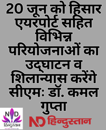 20 जून को हिसार में एयरपोर्ट सहित विभिन्न परियोजनाओं का उदघाटन और शिलान्यास करेंगे मुख्यमंत्रीः डॉ. कमल गुप्ता