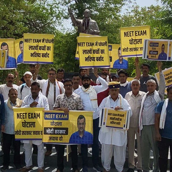 उन्होंने कहा कि यह नीट का एग्जाम मोदी सरकार का भ्रष्टाचार है। शिक्षा मंत्रालय और उसके अधीन आने वाले एनटीए ने भाजपा शासित राज्यों में उसके नेताओं के साथ मिलकर देश के लाखों बच्चों के भविष्य के साथ खिलवाड़ किया है। इसलिए हमारी मांग है कि यह नीट का एग्जाम रद्द होना चाहिए और दोबारा परीक्षा होना चाहिए। नीट के परिणाम 14 जून को आने थे, लेकिन इसे दस दिन पहले यानि 4 जून को ही जारी कर दिया गया। ताकि मीडिया चुनावी नतीजों में लगी रहे और भाजपा के पेपर लीक की चर्चा न हो। इसलिए एनटीए ने जानबूझकर 4 जून को नतीजे जारी किए। इस बात की जांच होनी चाहिए कि किन कारणों से 14 जून की जगह 4 जून को नीट के नतीजे जारी किए गए? आम आदमी पार्टी मांग करती है कि सुप्रीम कोर्ट की निगरानी में नीट परीक्षा में हुए घोटाले की जांच कराई जाए।