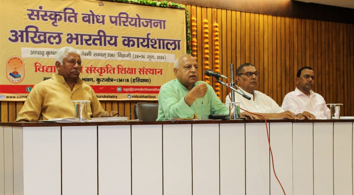 कुरुक्षेत्र। विद्या भारती संस्कृति शिक्षा संस्थान में तीन दिवसीय संस्कृति बोध परियोजना अखिल भारतीय कार्यशाला का शुभारंभ मां सरस्वती के समक्ष दीप प्रज्ज्वलन से हुआ। इस अवसर पर मंचासीन विद्या भारती संस्कृति शिक्षा संस्थान के अध्यक्ष डॉ. ललित बिहारी गोस्वामी, सचिव वासुदेव प्रजापति, निदेशक डॉ. रामेन्द्र सिंह, सं.बो. परियोजना के विषय संयोजक दुर्ग सिंह राजपुरोहित रहे। संस्थान के सचिव वासुदेव प्रजापति ने संस्थान द्वारा इस वर्ष से शुरू की गई ‘‘भारतीय ज्ञानपरम्परा आधारित संस्कृति बोधमाला’’ पुस्तकों पर प्रकाश डाला। संस्कृति ज्ञान परीक्षा में प्रयोग होने वाली कक्षा 3 से 12 तक की ये पुस्तकें बहुरंगी हैं, जिनके माध्यम से संस्थान द्वारा भारतीय संस्कृति को जन-जन तक पहुंचाने का अनूठा प्रयास किया गया है। कार्यशाला में देशभर से 82 कार्यकर्ता भाग ले रहे हैं।