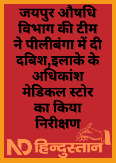 पीलीबंगा।नशे के रूप में उपयोग होने वाली दवाइयों की अवैध बिक्री को लेकर गुरुवार को जयुपर से आई औषधि विभाग की टीम ने कस्बे में कई मेडिकल स्टोरों पर दबिश देकर सघनता से जांच की।टीम में शामिल एडीसी. अजीत जैन,डीसीओ सांवरमल, डीसीओ मनीष मोदी सहित हनुमानगढ़ डीसीओ चंद्रकांत एवं डीसीओ पंकज जोशी ने अलग-अलग दुकानों पर जाकर नशे में प्रयुक्त होने वाली दवाओं की खरीद एवं बिक्री की गहनता से जांच की। इसके अलावा औषधि विभाग की टीम ने मेडिकल स्टोरों पर फार्मास्टिस की उपस्थिति,बिल बुक,एच. वन रजिस्टर, दवाओं के संधारण आदि की भी गहनता से जांच की।