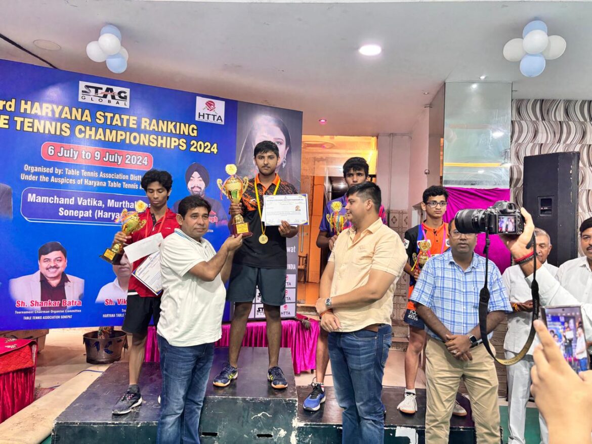 रोहतक। सोनीपत में हुई तीसरी हरियाणा स्टेट रैकिंक टेबल टेनिस चैंपियनशिप में सनसिटी सेक्टर-34 निवासी निकुंज अत्री ने 2 गोल्ड मेडल हासिल किए। वह पठानिया पब्लिक स्कूल में बारहवीं कक्षा का छात्र है। इस चैंपियनशिप का आयोजन 6 से 9 जुलाई तक किया गया था। यह जानकारी निकुंज के पिता नितिन अत्री ने दी। उन्होंने बताया कि 16 वर्षीय निकुंज ने चैंपियनशिप के अंडर-19 आयु वर्ग में गोल्ड मेडल और पुरूष वर्ग में भी गोल्ड मेडल हासिल किया। निकुंज ने कोच भावना सैनी की देखरेख में कोचिंग हासिल की है। हरियाणा टेबल टेनिस एसोसिएशन के तत्वावधान में आयोजित इस चैंपियनशिप में प्रदेश भर के खिलाडि़यों ने भाग लिया। निकुंज अत्री की इस उपलब्धि पर परिवार और स्कूल में खुशी का माहौल है।