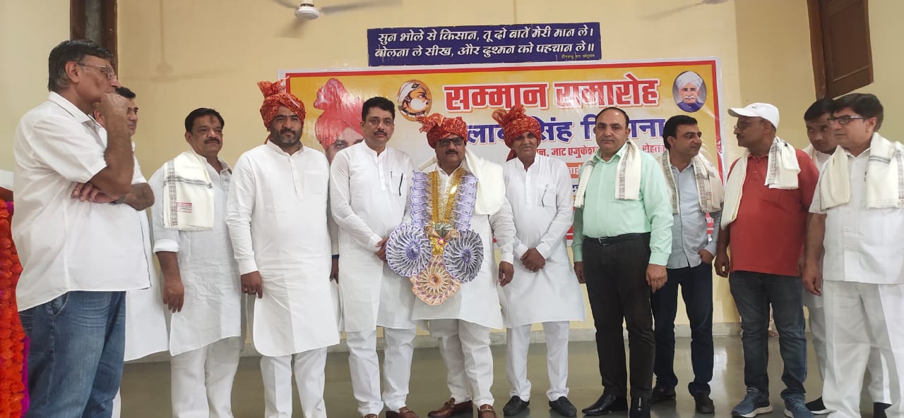 रोहतक। जाट एजुकेशन सोसायटी रोहतक के प्रधान श्री गुलाब सिंह दिमाना तथा महासचिव नवदीप (मोनू) और कार्यकारिणी के सदस्यों का गुरुग्राम के छोटूराम भवन झाड़सा में आयोजित सम्मान समारोह में पगड़ी बांधकर व स्मृति चिन्ह देकर भव्य स्वागत किया गया। प्रधान श्री गुलाब सिंह दिमाना ने सर्वप्रथम दीनबंधु सर छोटूराम की प्रतिमा पर पुष्प अर्पित किए। श्री दिमाना ने समाज के लोगों से अपील के की कि वे संस्था के उत्थान के लिए कभी भी आकर अपने सुझाव व सहयोग दे सकते हैं ताकि संस्था को हम शिक्षा के क्षेत्र में सर्वश्रेष्ठ बना सके । उन्होंने कहा कि उत्तर भारत की सबसे प्रसिद्ध संस्था जाट एजुकेशन सोसायटी रोहतक की जो जिम्मेदारी उन्हें मिली है उसके विकास के लिए वे हर संभव कार्य करेंगे और समाज के लोगों को साथ लेकर संस्था को शिक्षा के उच्च शिखर तक लेकर जाएंगे। इस अवसर पर चारों जाट सभाओं के प्रधान श्री विनोद दहिया, श्री राजवीर ठाकरान, श्री जयपाल धनखड़, श्री प्रीतम सिंह व संतोष सिंह एडवोकेट, वीरू सरपंच, हरियाणा जनहित पार्टी के प्रदेश अध्यक्ष श्री संजय साहू, श्री धर्मवीर मलिक, श्री बलराज अहलावत, श्री समुंद्र सिंह, जोगेंद्र कोच सांपला, सुरेंद्र ढुल, जयकुंवार (नीटू), सुनील फरमाना, डॉ. देवेंद्र बालंद सहित आदि गणमान्य व्यक्ति मौजूद थे। फोटो कैप्शन 14 जेसी फोटो 01 जाट संस्था के प्रधान गुलाब सिंह दिमाना व पदाधिकारियों का स्वागत करते नागरिक।
