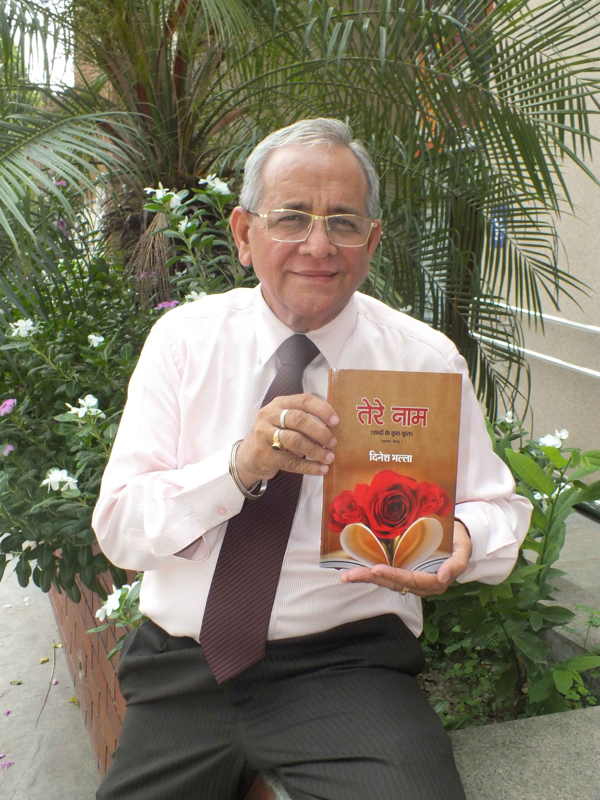 काव्य संग्रह तेरेे नाम के कवि दिनेश भल्ला पर चर्चा करते हुए काव्य संग्रह में कुल 53 कविताएं हैं जो कि श्रंृगार रस में डूबी हुई हैं जिन्हें पाठक पढकर कर अच्छा अनुभव करेगा। सभी कविताएं बहुत ही सरल भाषा में पिरोहा गया है जिसे आसानी से समझा जा सकता है। उन्होंने बताया कि वे अंतर्मुखी स्वभाव के हैं इसलिए अपनी कविताओं को दूसरे के समक्ष प्रस्तुत करने में हिचकिचाहट हुई लेकिन भारतीय स्टेट बैंक से सेवानिवृत्ति के उपरान्त उन्होंने अपनी रुचि को पूरा करने हेतु अपने जज्बातों, अरमानों आदि को शब्दों के रंगों में रंगने का कार्य आरम्भ किया। सभी कविताओं को पन्नों पर उतारा। फिर पत्नी सविता भल्ला, बेटी नेहा भल्ला सूद, दामाद सिद्धांत सूद,  बेटा साहिल भल्ला और बहु रूचिका भल्ला द्वारा मनोबल को बढ़ाने पर इस संग्रह को पुस्तक में बदल दिया गया। उनके छोटे भाई संजीव भल्ला ने इन कविताओं के प्रकाशन में तथा इन्हें अन्तिम रूप देने में सहायता की।