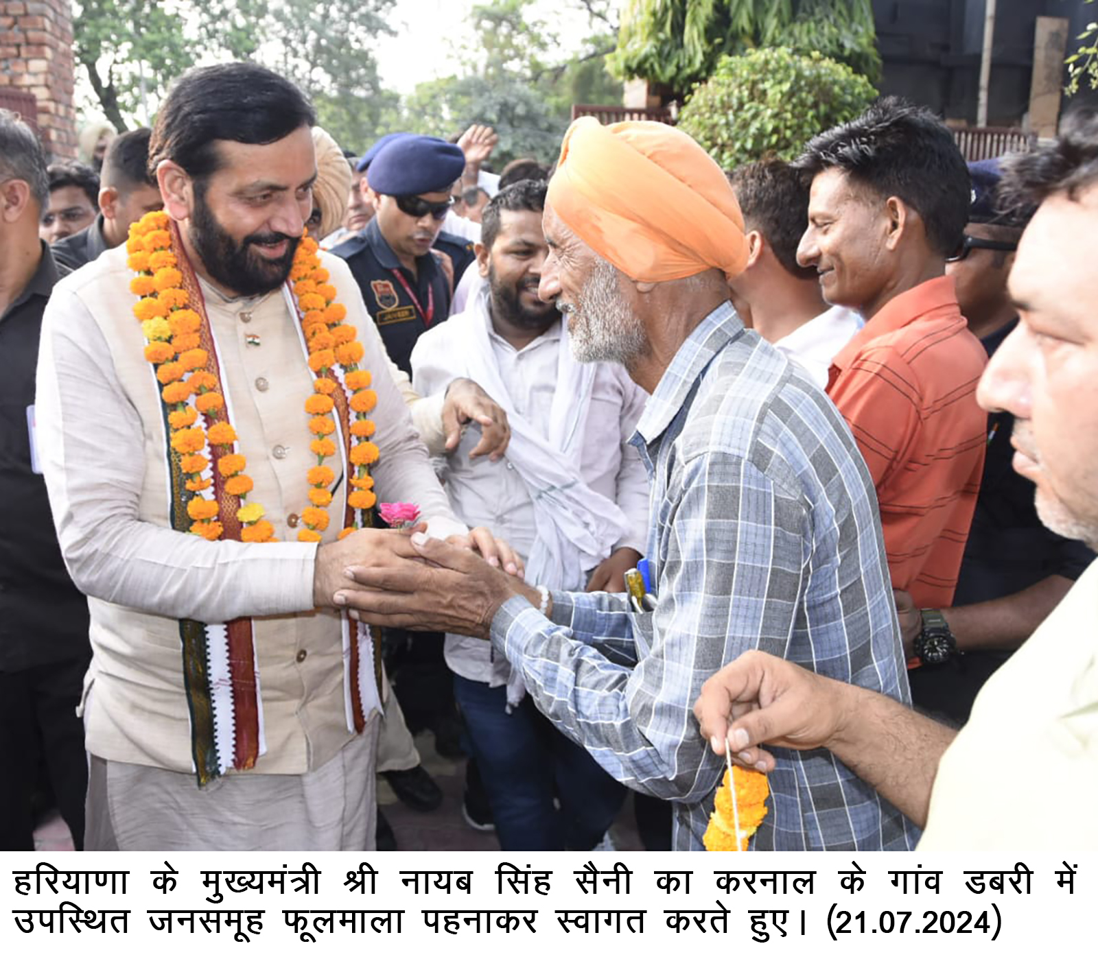 मुख्यमंत्री इसके बाद एडवोकेट विजय वेदपाल के निवास स्थान पहुंचे जहां पर ढोल नगाड़े बजाकर तथा फूल माला पहनाकर उनका जोरदार स्वागत किया गया। उन्होंने विधानसभा व लोकसभा चुनाव में करनाल से कमल के फूल को भारी विजय दिलाने के लिए धन्यवाद किया।