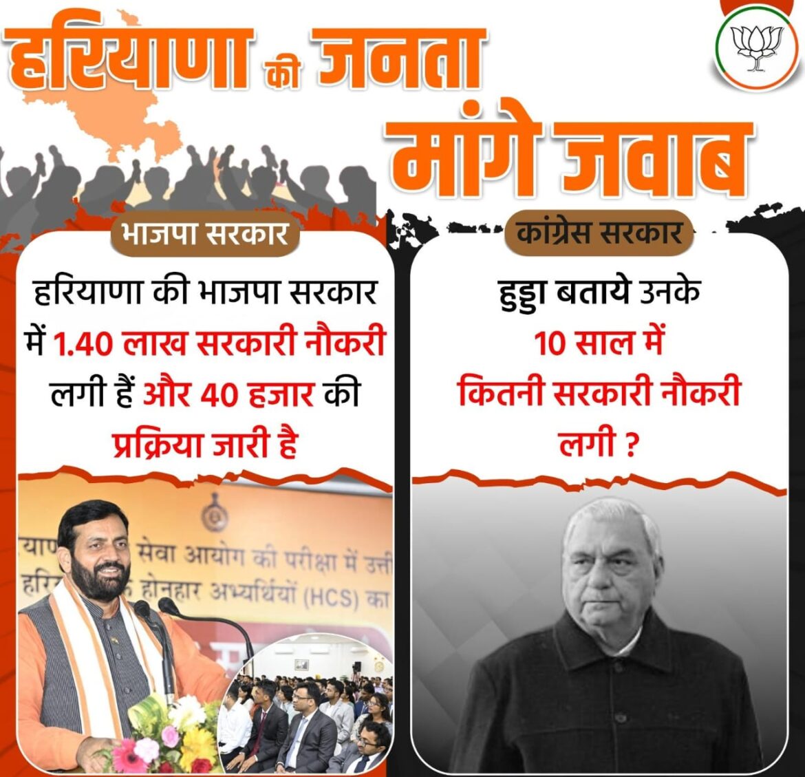 भाजपा की मीडिया और सोशल मीडिया टीम कांग्रेस शासन काल के दौरान 2005 का गोहाना कांड, 2006 का महमूदपुर कांड और 2010 में हुआ मिर्चपुर कांड हरियाणा की जनता को याद दिलाने में लगी है कि कैसे कांग्रेस शासन में दबंगों ने पुलिस की मौजूदगी में दलितों पर अत्याचार किया और उनके घरों को जला दिया था। सरकार से हिसाब मांगने निकली कांग्रेस खुद ही बिखरी हुई है। गुटबाजी के चलते कांग्रेस का एक धड़ा हरियाणा मांगे हिसाब यात्रा” से न केवल दूरी बनाए हुए है बल्कि इसका बायकॉट भी कर रहा है। कांग्रेस का खुद का हिसाब-किताब बिगड़ा हुआ है।
