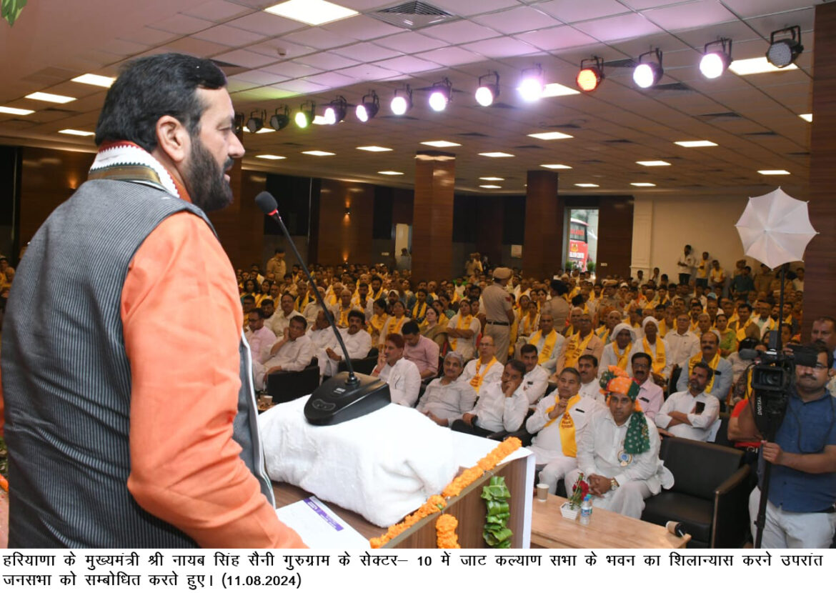 मुख्यमंत्री नायब सिंह सैनी ने गुरुग्राम में जाट कल्याण सभा के भवन का किया शिलान्यास, ऐच्छिक कोष से की 31 लाख रुपए देने की घोषणा