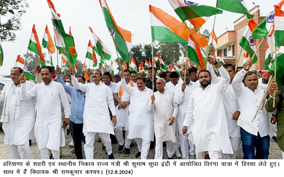 चंडीगढ़ । हरियाणा के शहरी एवं स्थानीय निकाय मंत्री श्री सुभाष सुधा ने आज करनाल के इंद्री के सिंचाई विभाग के विश्राम गृह के प्रांगण से हर घर तिरंगा यात्रा को झंडी दिखाकर रवाना किया और शहीदों को श्रद्धांजलि दी।